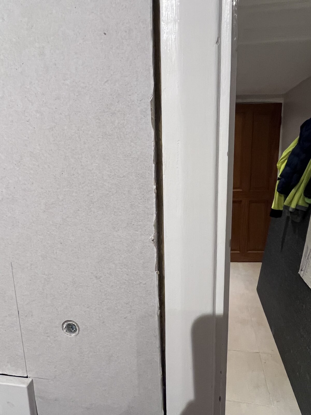 I’m in the process of applying 25mm insulated plasterboard but it’s deeper than the door frame. It obviously needs to be flush but unsure what would be the best thing to use to level it out or how I would even start without it looking crap. There is also a gap that varies in width between the edge of the plasterboard and frame (the wall wasn’t straight!) so this needs filling in too.