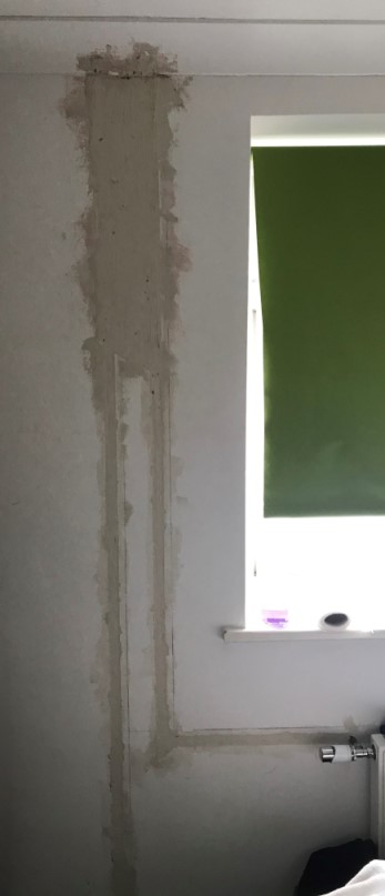 the plumbers filled in the chasing with plaster etc but I need an actual plasterer to bring it back to a smooth wall.