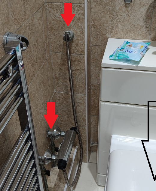 You appear to have a shower head that can reach the toilet pan.