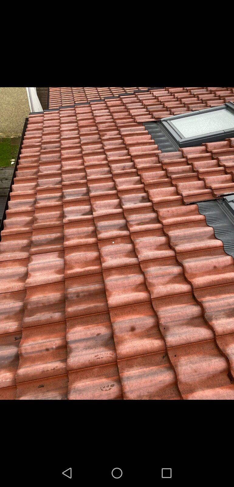 Erect a small portable aluminium scaffolding tower for access to works also placing a skip on site for the removal of debris. Remove all existing roof materials lead works dry verge system roof tiles ridge tiles batons felts and velux window flashing kits install 3 inch firings to roof rafters giving a more adequate fall to eaves install 1.5 meter x 300 cavity protection and felt support trays to all eaves lay a vapour free breathable felt membrane to all roof areas before gauging out 2x1 water treated roof batons to accommodate roof tiles (Marley Mendip or a Double Roman adequate for pitch) adjust velez windows to accommodate new pitch of roof before laying roof tiles cutting in around velux windows to a neat finish while re installing flashing kits sealing velux to main roof elevation grind out brickworks/mortar joints to a depth of 20mm 2 course of brick up from roof level ready for lead work installation. Screw fix in place 4 meter x 2x1 inch roof batons to gable sides before installing a black breathable upvc dry verge system with a decorative ridge cap install new Code4 300mm leadworks acrooss rear of extension inserting in to previously ground out brickwork and under window cills repointing to a neat finish using a standard 3/1 mortar mix insert 2x1 timbers to ridge tree before installing a breathable dry ridge system kit with ridge tiles to match colour and profile of roof tiles before re plastered inside window reveals of velux windows to complete works. Remove all debris from site leaving clean and tidy all works to be completed to a high standard and to customers satisfaction completed works will also carry a full 5 year Guarantee upon completion and receiving all payments in full