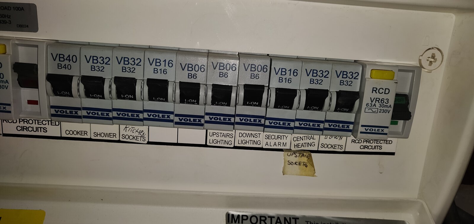 Did you turn all of the MCB's off ,then back on ,after re setting the RCD ( larger breaker on the far right)?