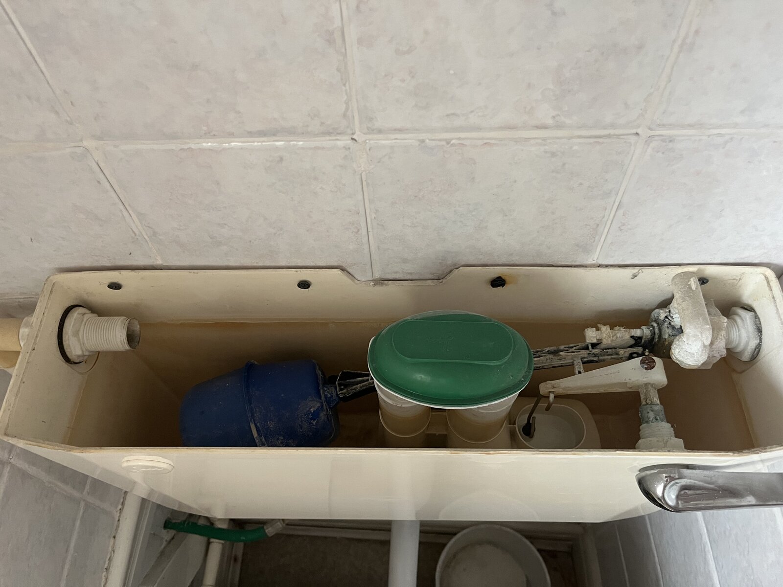 Hi, we moved into an old house and have a toilet in a cupboard under the stairs. I can’t change the toilet for a close coupled toilet because of where the pipes are on the back wall. I was going to buy a low level toilet and change this existing one but I’ve just noticed two pipes coming from the cistern. Just wondering if anybody can tell me what the one on the left is?