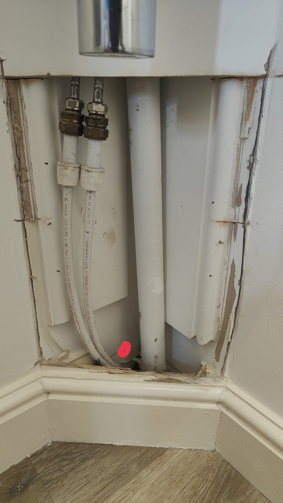 I'm plumbing in a Samsung fridge Freezer, and the pipe will come through where the red dot is.