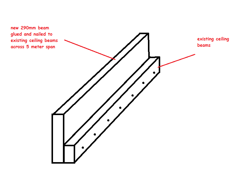 He then says I would need 290mm wooden beams to span the roughly 5 meters of floor space by simply nailing and glueing these to the existing beams running along the ceiling and this will be more then strong enough to support the new loft floor. I admit this is all very new to me and this structural engineer has been in the trades for many years working all over the country so i've no doubt he knows his stuff. But i'm just curious how often these methods are used and if anyone has any experience of what the loft is like once is been done?
