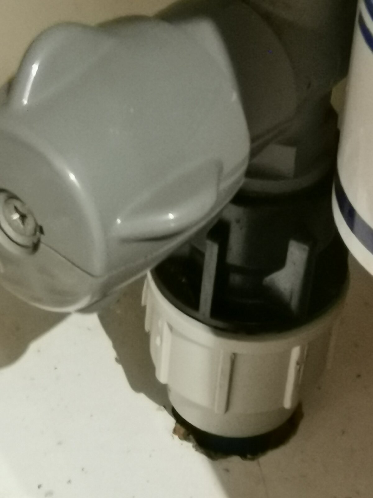 In order to minimise the hole required to be cut in the base of the unit, I want to remove and replace the stopcock, which also may be necessary as just above the stopcock is a water filter which is also getting replaced (I'm having a RO system instead). If you look at the photo, just below the stopcock are two halves of a connector, the black and white ones. Now I'm not sure what this is connecting together. Is it re-enforcing the polyplumb bottom connector, the one before the actual stopcock, which will make sense since if it breaks here, there will be a lot of water and the only way to stop it would be from the outside meter. Or is it simply something else?