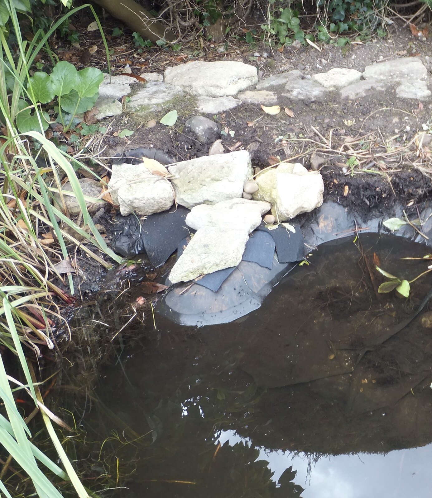So, in letting it leak/ drain some of the rips are appearing, mostly it appears in the one area, about a foot square in total. There are some I can feel that are under the waterline at the moment. Is there any glue/adhesive or mastic that I can use UNDER the waterline to try to put a patch in place ? I know it is not ideal or the normal thing to do but the alternative is just so expensive for a small garden pond. Thanks. DSCF6760.JPGDSCF6766.JPG