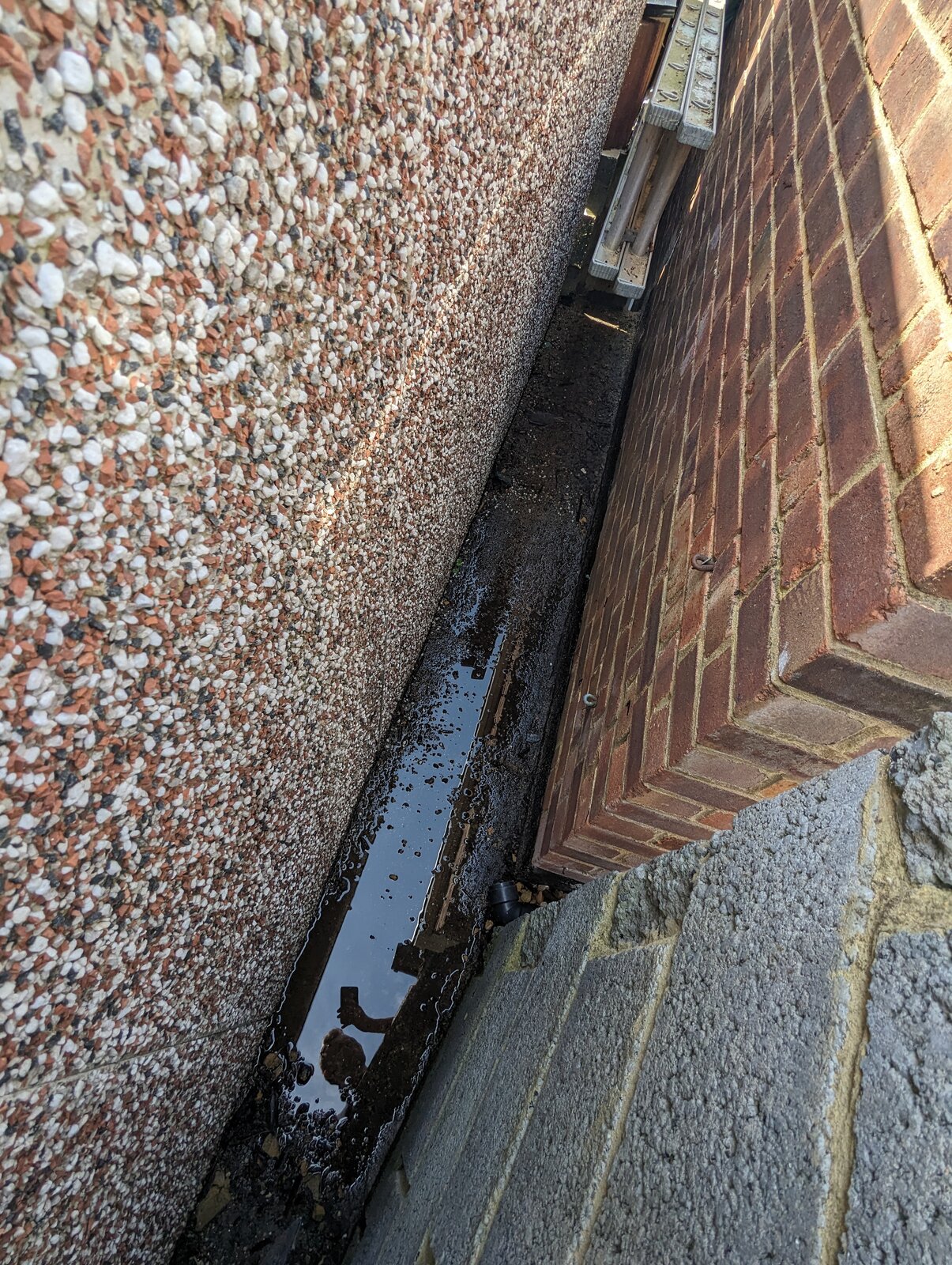 Just looking for advice on what to do in-between mine and neighbours detached garages, water will pool from general rain and guttering (nowhere else to really direct water) onto concrete