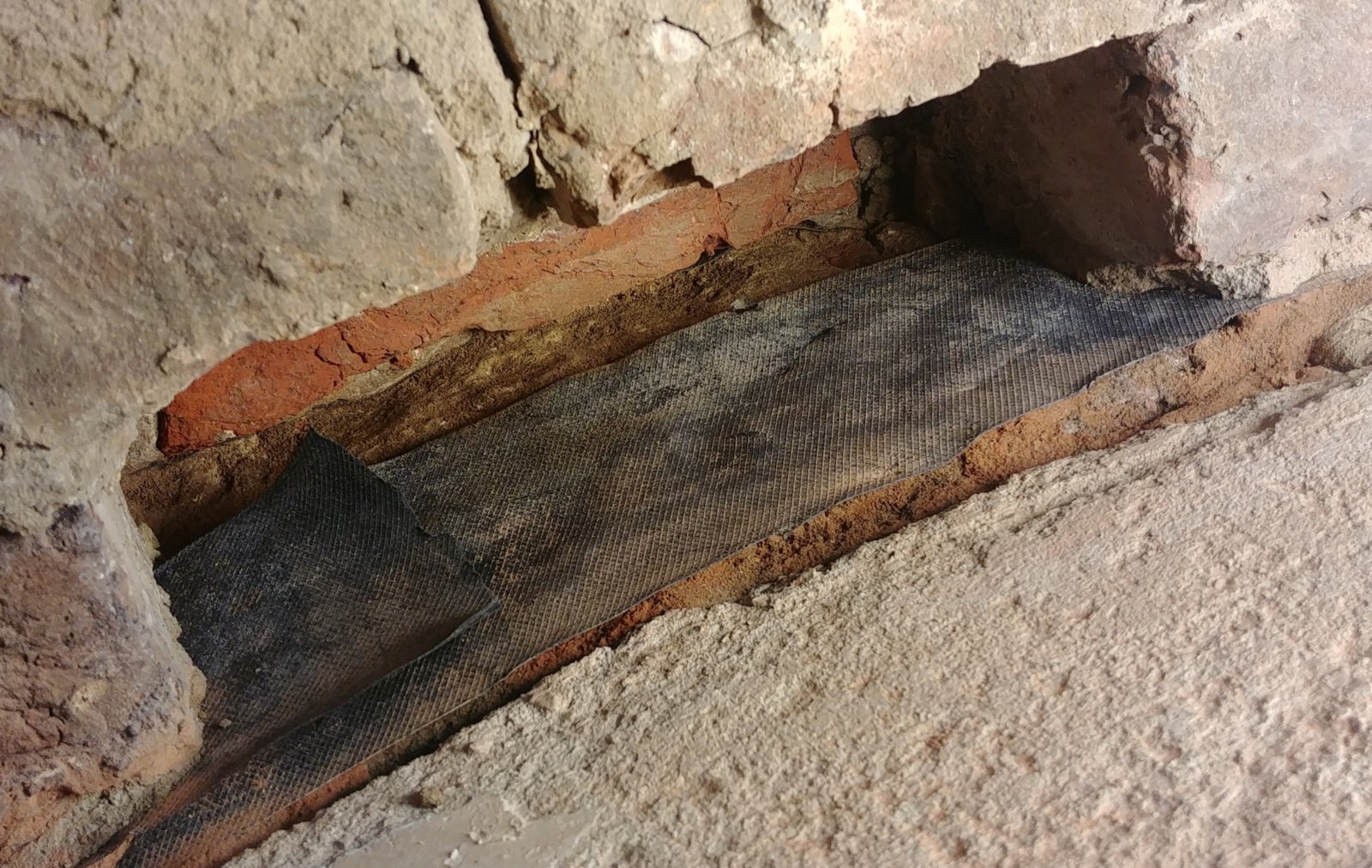 Just investigating the rising damp issue in the original part of our house (built pre 1900). We could see that a DPC had been retro-fitted at some point, but this obviously hadn't fixed the issue. After removing a brick (see attached image) it appears the DPM only just cover the base of the bricks and there is a circa 25mm gap between which is where moisture is still being allowed to wick up (I've cleaned out all of the mortar that was in there).