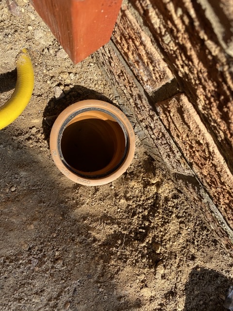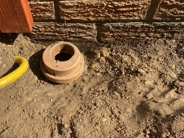 If you just put a hopper in there’s no trap so it’s not a gulley. Where’s the finished outside ground level, and is the orange socket a bend below ground?