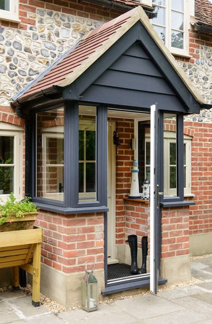 I'm building a little enclosed porch on the back door (I've attached an image of the sort of thing I'm thinking of). I've built up the dwarf wall and am now thinking of the best way to build the timber frame. I've looked at much grander porches and conservatories to see how they are constructed. I'm thinking of three options: