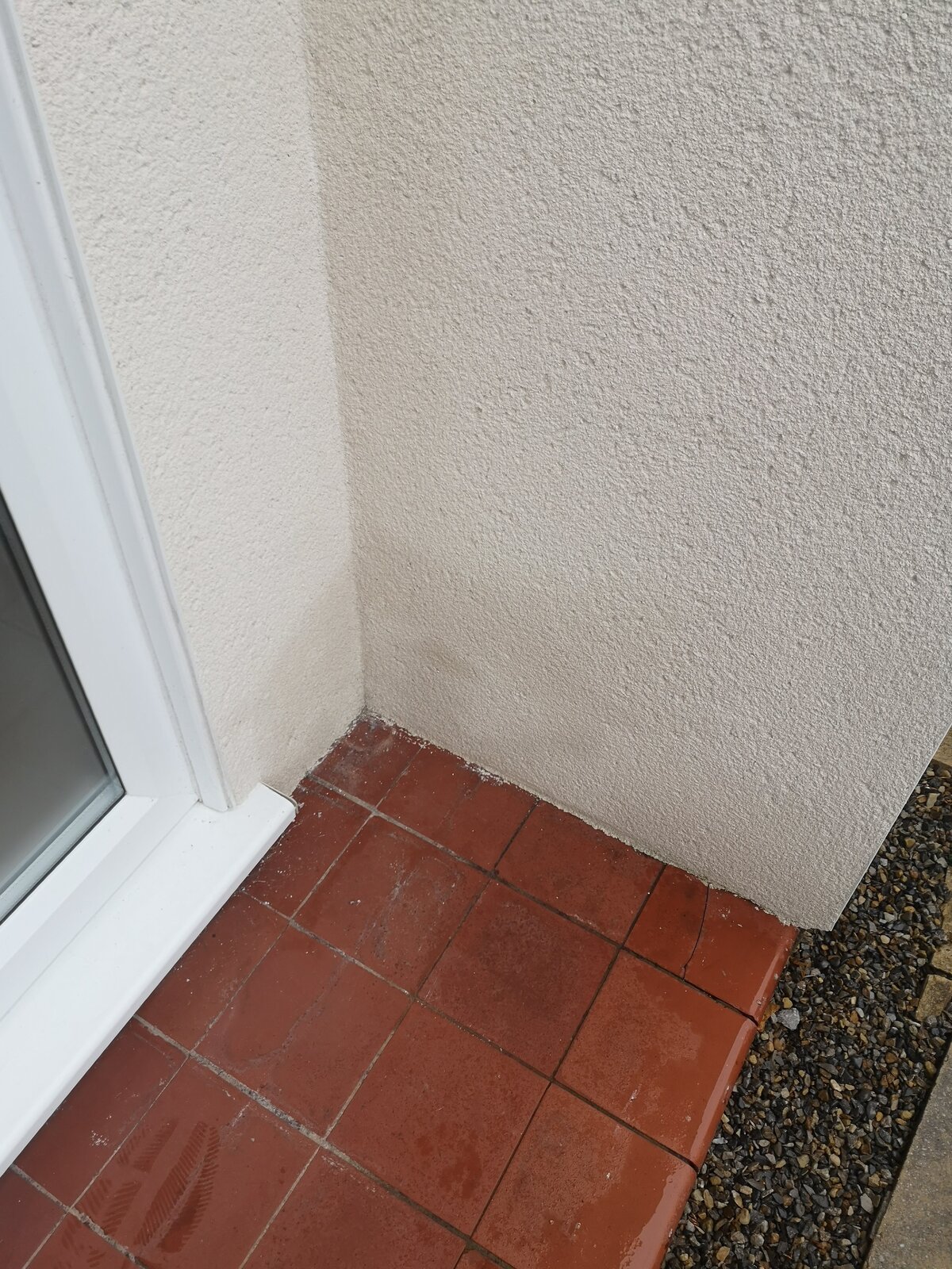 I cut out a channel around the brickwork to see if this would help, but it hasn't made any difference. The plan is to get the front drive all done, but at the moment I need to sort out the rising damp that I can see in the porch area.