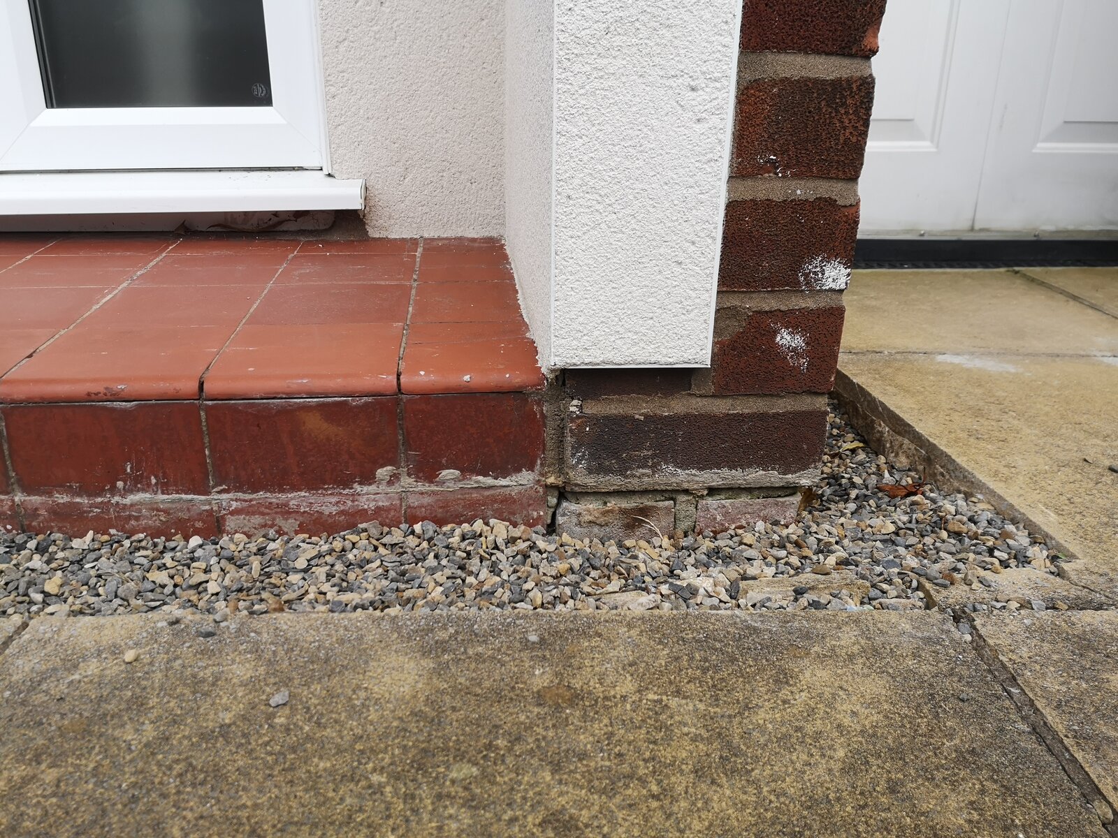The previous owners, had raised the drive too high ( pics attached)and I was seeing the rain splash going above the the dpc.