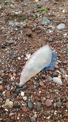 Im staying in Beer, Devon for a long weekend. This morning went for a walk along the beach and I saw quite a few Portugese Man O' war jellyfish along the foreshore.
