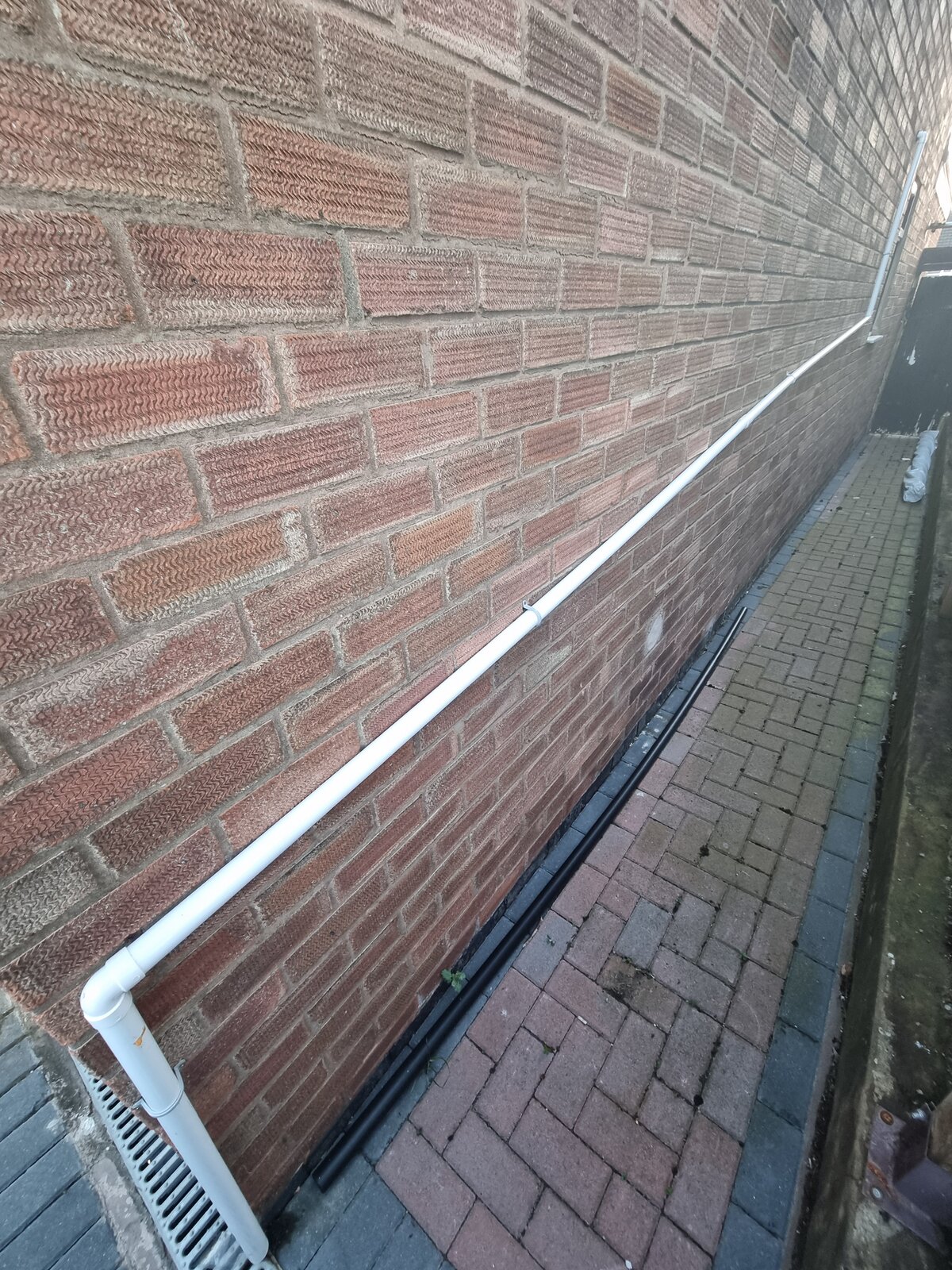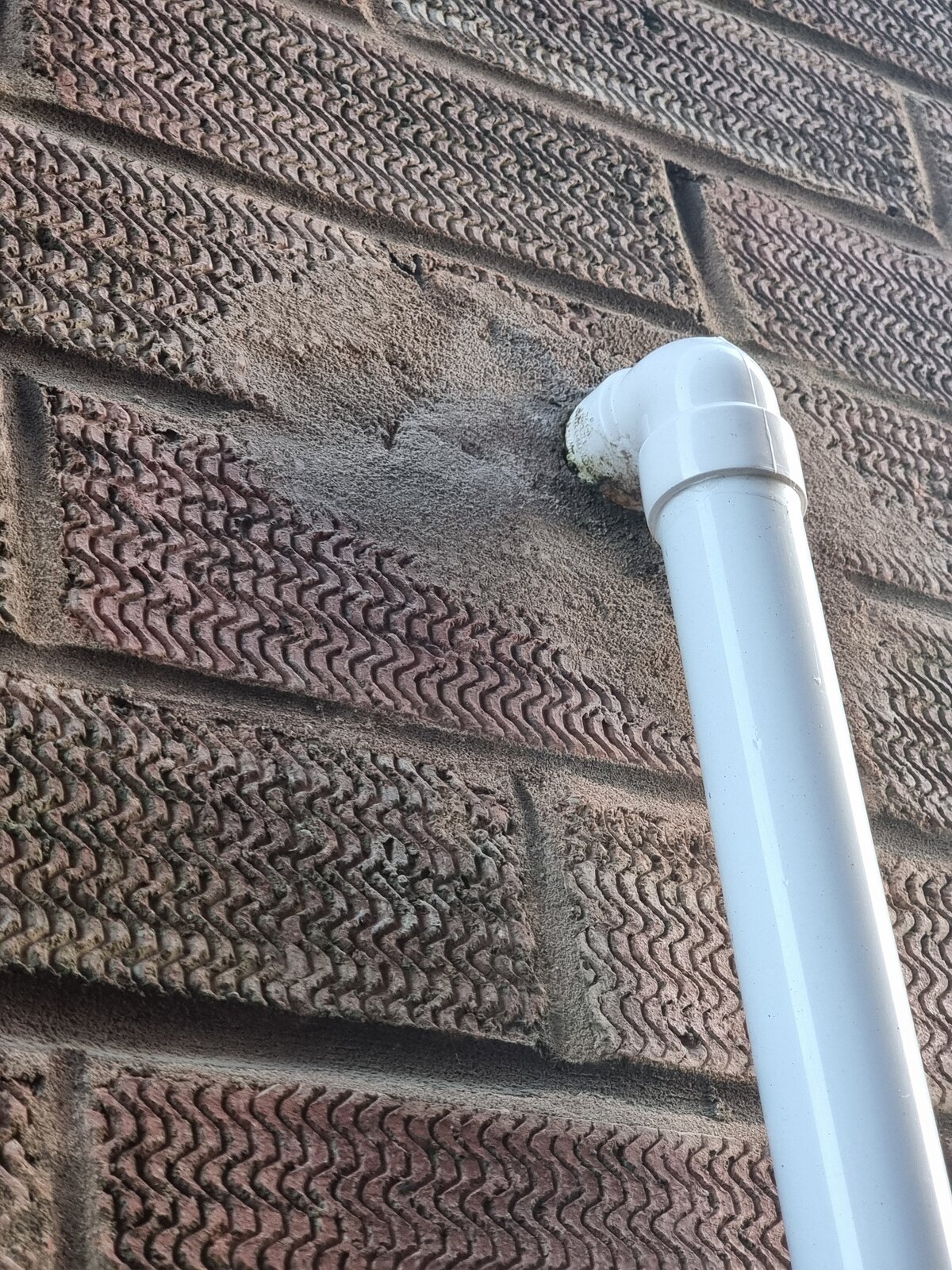 The previous picture of the condensate pipe was (unhelpfully nightime picture) from the outside, they'd left it like this and not patched it up. Below pictures are more cenent since they cemented/ filled in over the brick.