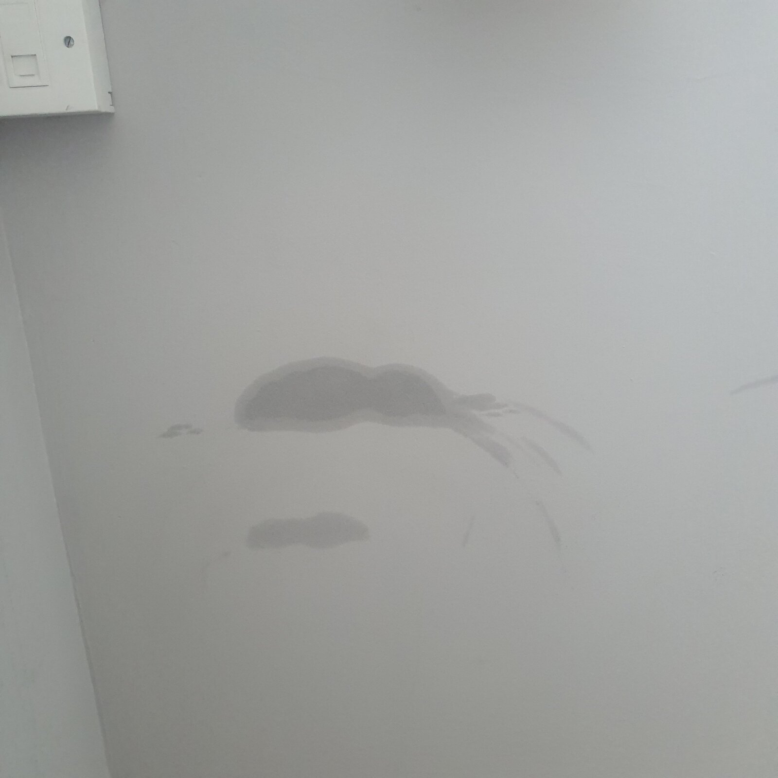 I've looked at photos of penetration damp and none I've seen look like this. The shape of this mark is weird and the outer ring makes me think it's an oil based stain?