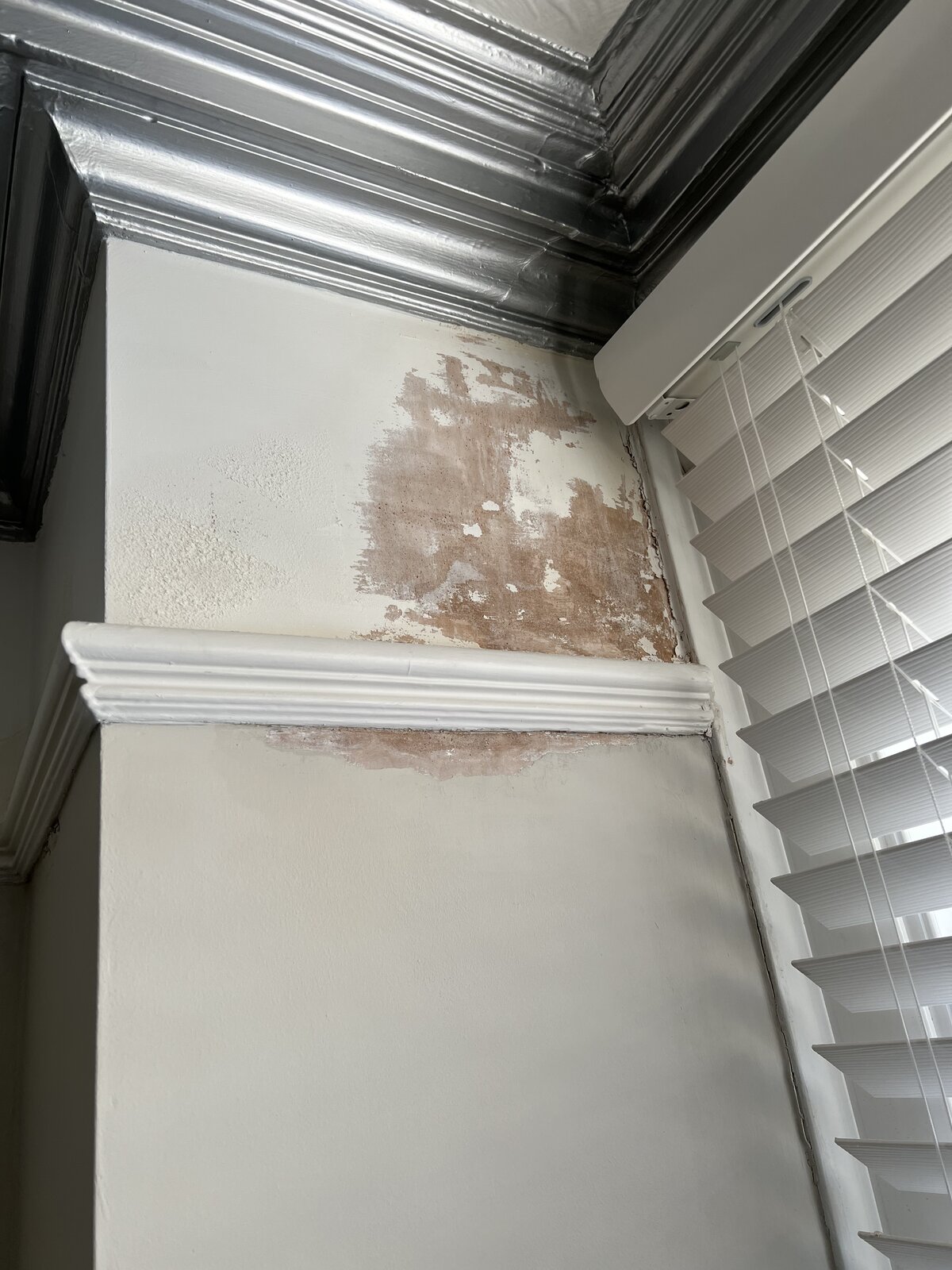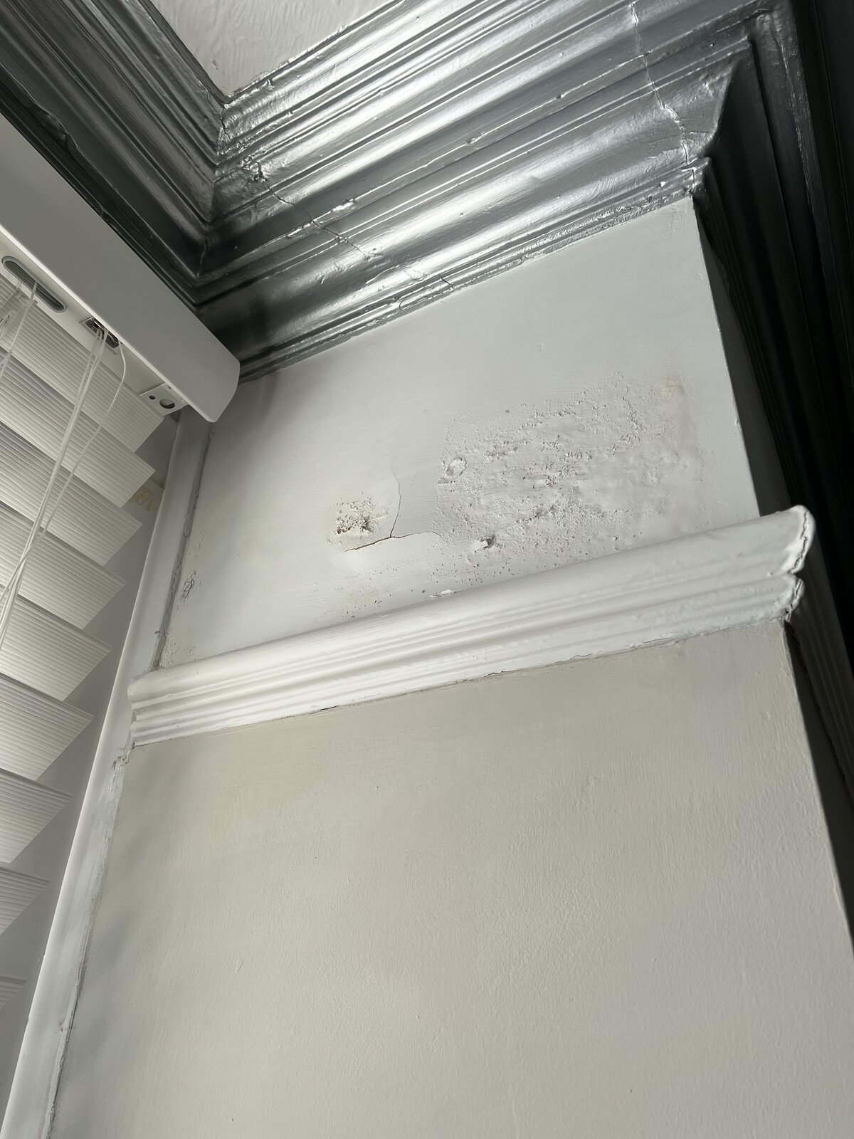 Pic 270: Cracks in the coving and the ceiling decorations are distorted.