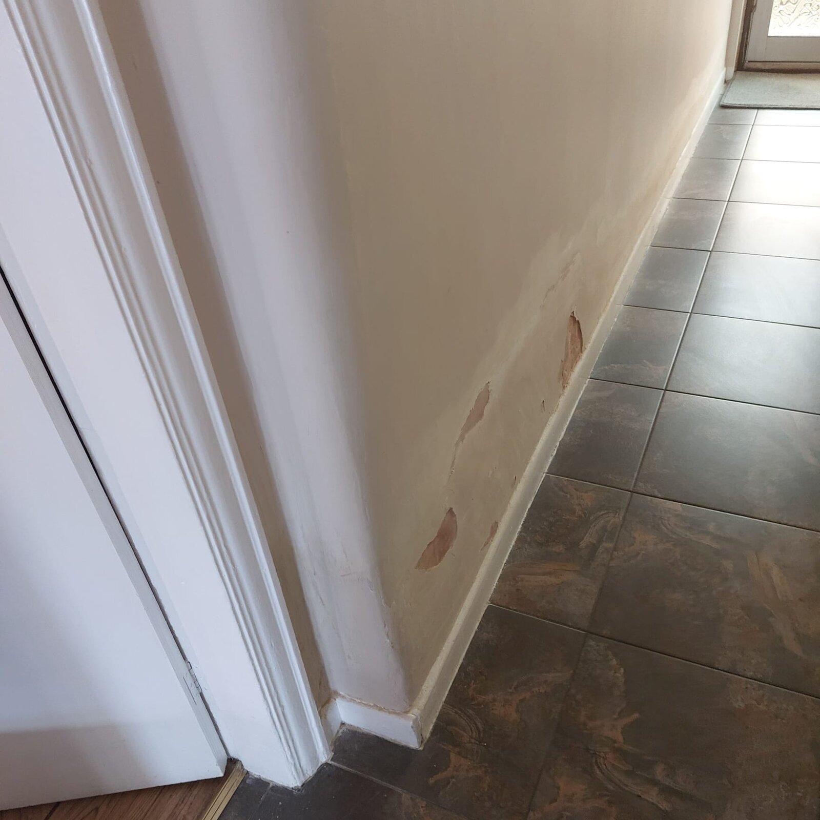 I'm posting on behalf of my aunty who lives in an end-of-terrace approx 1940s built property. They and their neighbour both have this damp and it has spread over many months.