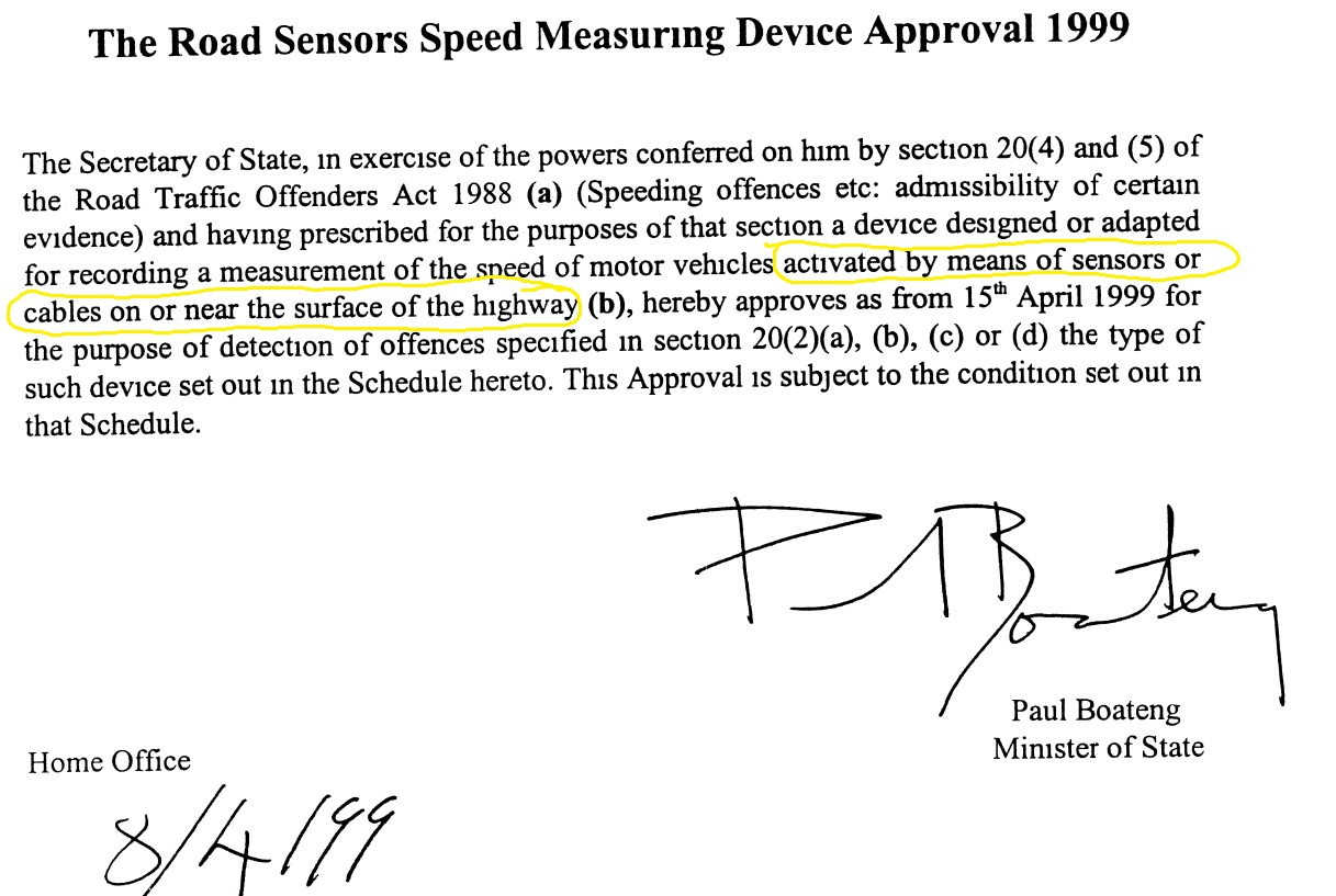 This is the Type Approval from the government for the 'Truvelo Combi smc' camera(i.e. the early one). They are literally not allowed to work without the black lines in the road. I'd guess it was a newer type of Truvelo, like @sodthisforfun mentioned on Sunday.