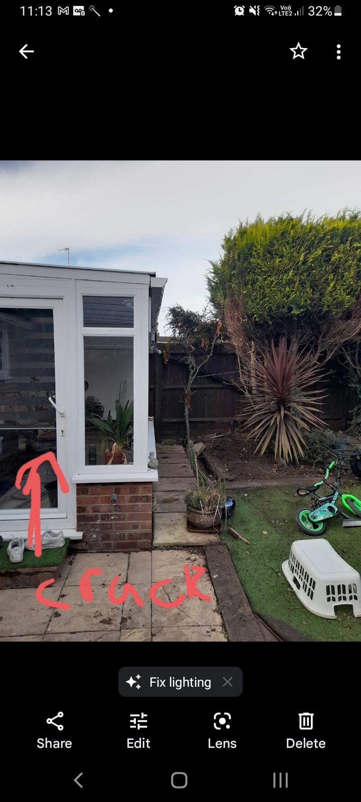I've just recently moved in to my late father's bungalow and have discovered the dwarf wall in the conservatory is progressively opening up In the corner. It's always been a issue but without a doubt has got much worse within the last few month's.