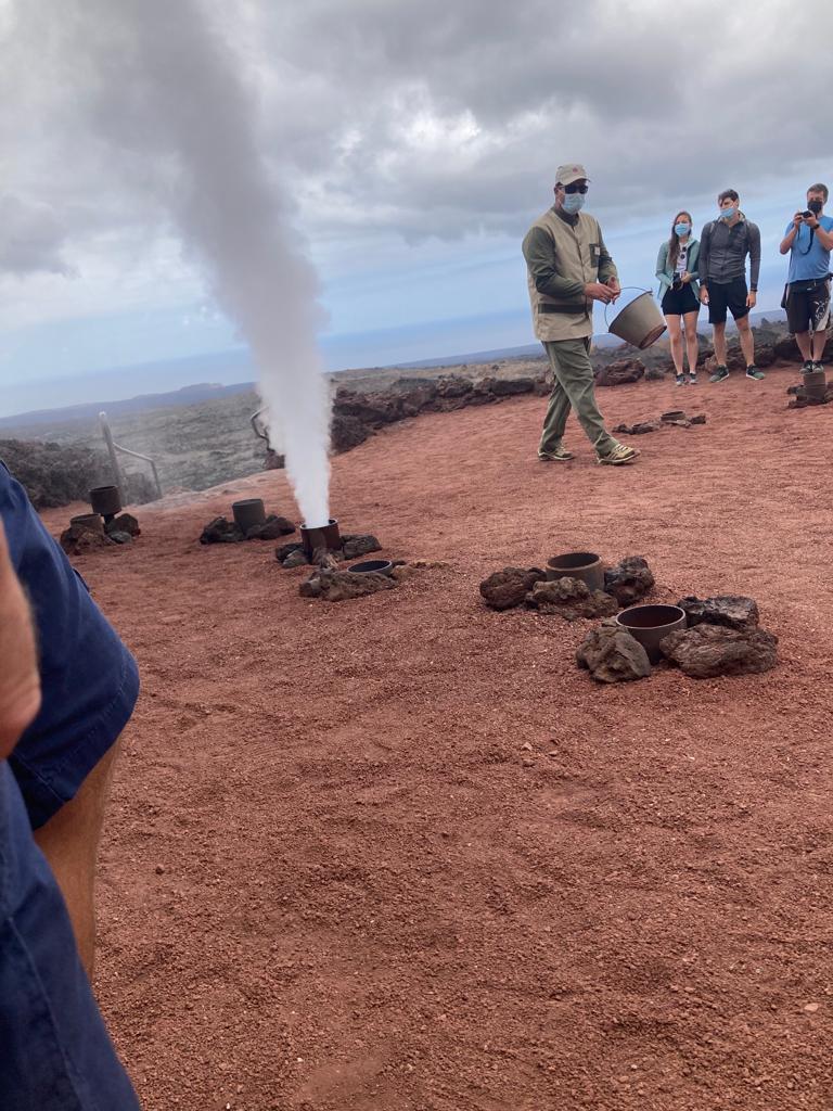 It was up on one of the volcanoes. The guy was demonstrating the heat inside the mountain by pouring water from his bucket into the receptacle and after a couple of seconds it blows it out like a geyser.