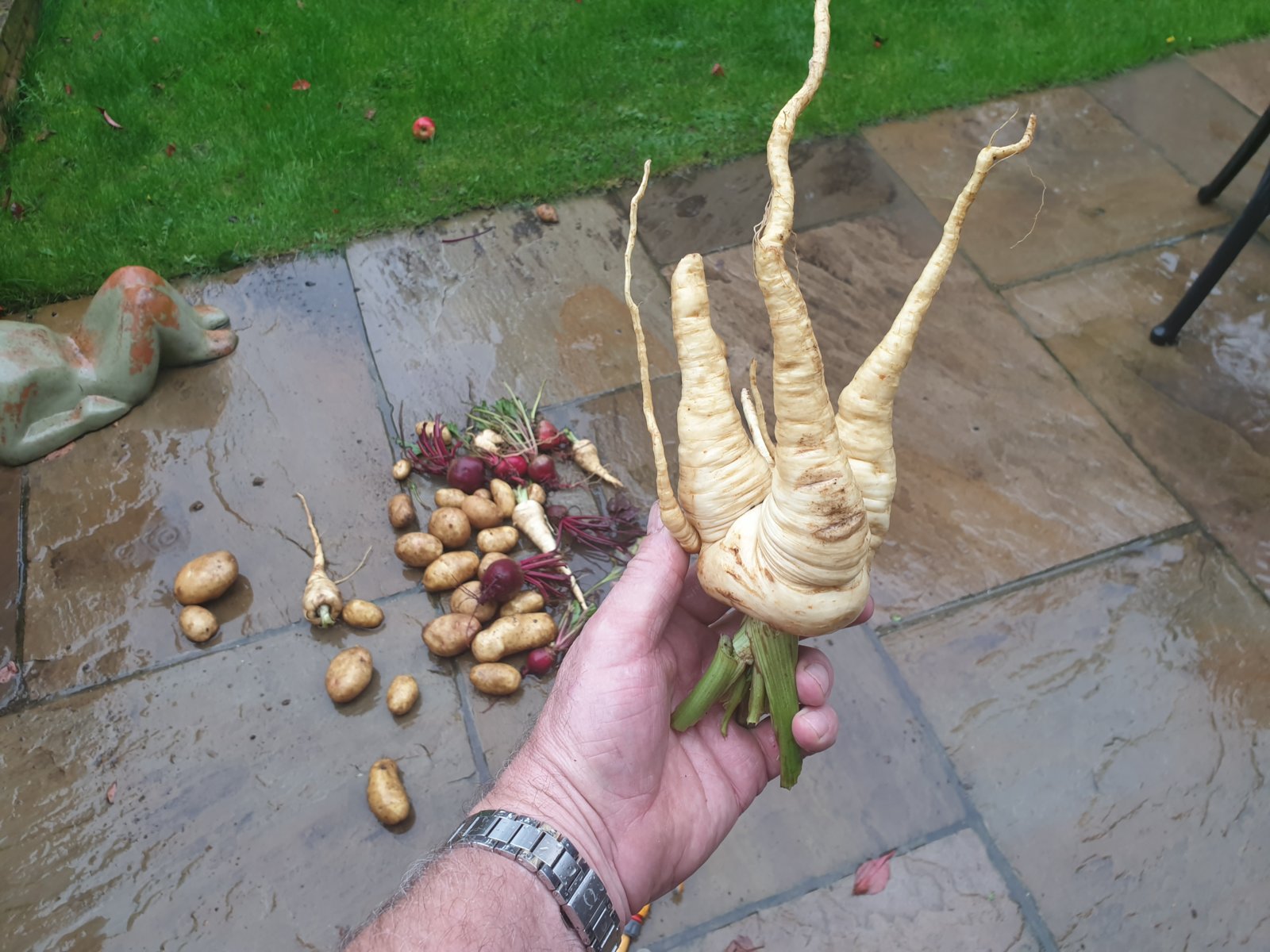 An odd parsnip that I dug up over my allotment. 30 years ago I could have sent that up to 'That's life'!