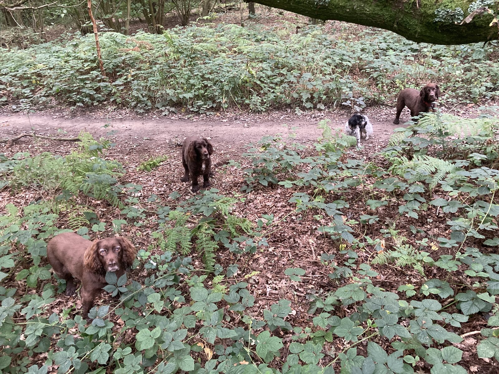 Four dogs watching me have a wee up against a tree. Awkward!