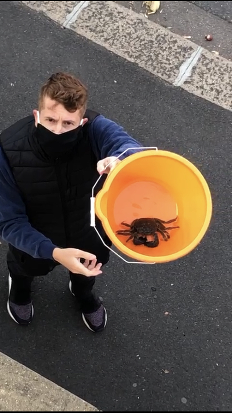 Could be a Chinese mitten crab, stamp on the ****er.ThenI didn’t take this picture, my daughter did and has just sent it to me. Her boyfriend found this crab in the car park to their flat. They live in North London! Their flat is on the edge of a canal but as far as I know, crabs are salt water creatures aren’t they?