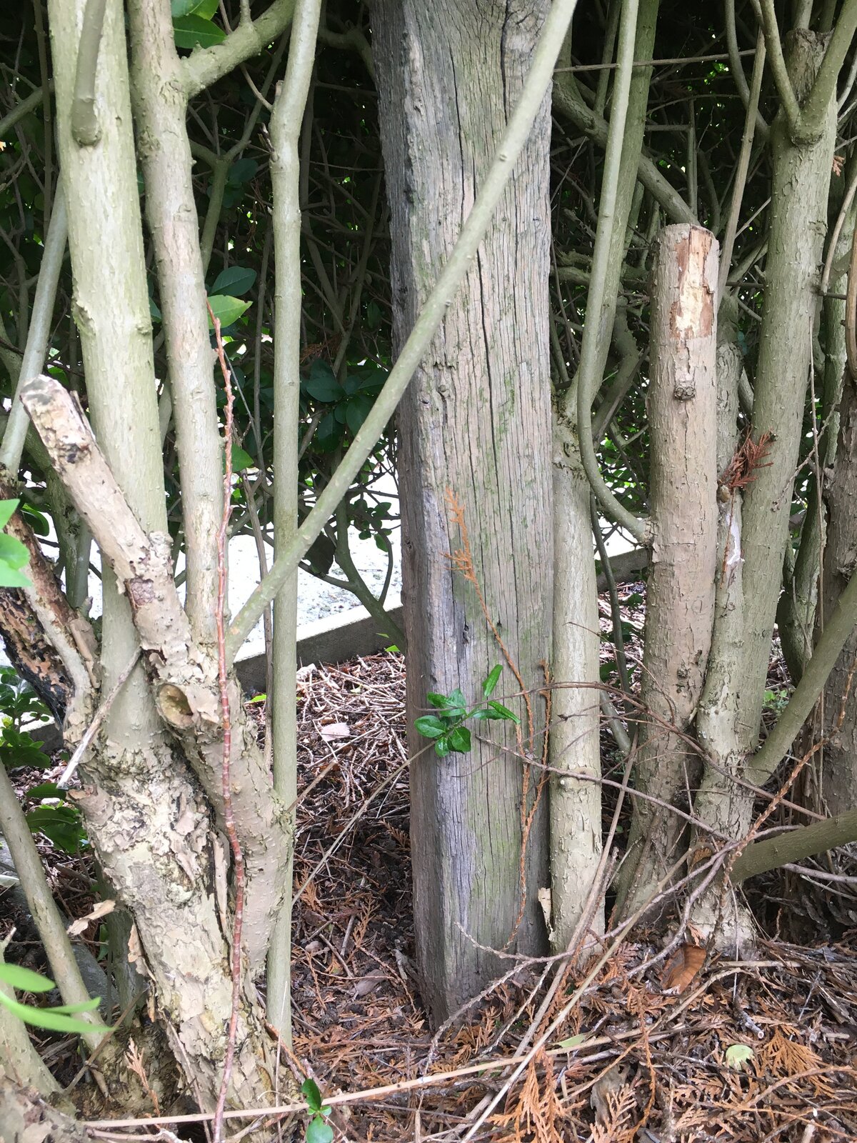 Anybody know what these posts are in the hedge at the end of my garden. They are oak and seem to have been put there around the time the garden was divided for another property. They run in a line along the stems of the hedge. My question is whether they likely represent the border..?