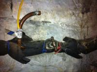Secondly (and probably more importantly) - the parts of the pipe I can see (directly around the tap itself and further down it in the gaps in the foam and where the 'foil' is ripped) the pipe is wet. There is no pooling that I can see (although the cellar is quite damp anyway) but the pipe has 'beads' of water right the way along until it goes through the wall. There was also a drip on the tap itself. There are electrical wires in the cellar too and I just think it all looks a bit dangerous...!