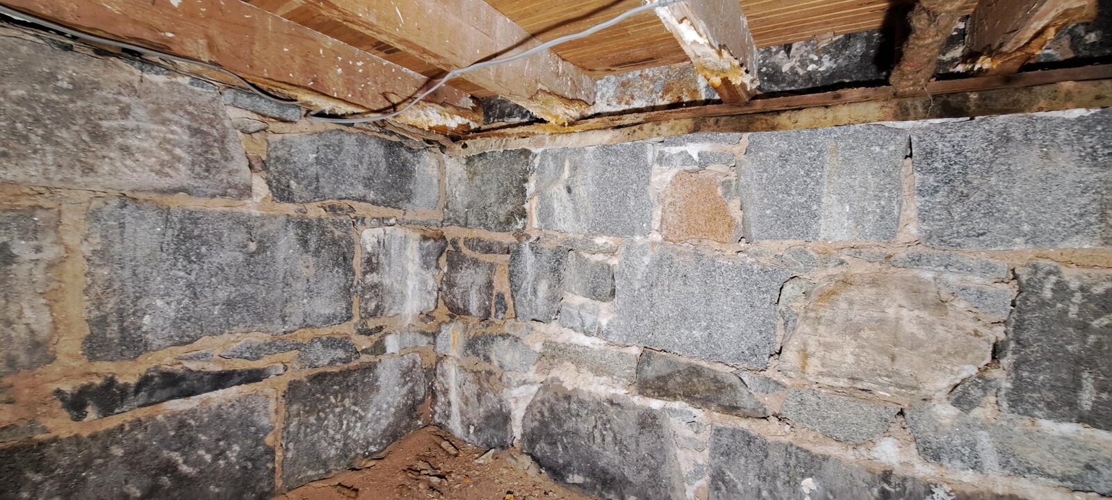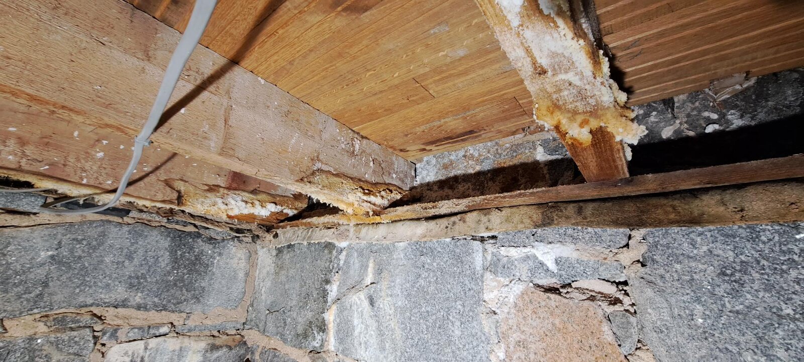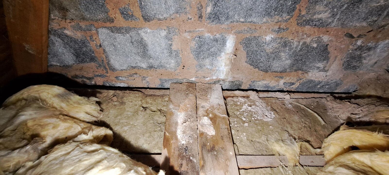 See attached pictures for joists sitting on wallheads underfloor, pointing on gable end, and penetrating damp on attic inside. You can see the difference in pointing from original lime to cement based on the picture of exterior.