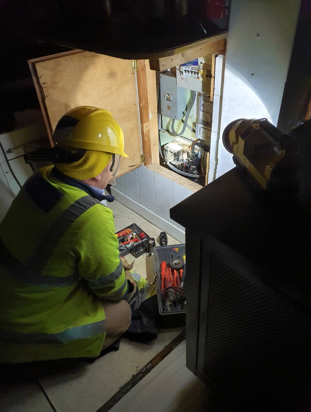 And, with the power back on, and the always on appliances on, he put a clamp on the live. Under normal circumstances they're only drawing about ¼ of the 23kW, so no where near overloading the system. As stated previously, 2 of the 6 lights in the fryer are not fitted. But I'm also wondering if they're actually rated up to 500W, and not just 250W, because that would then account for 3kW! I also noted that the lights are on dimmer circuits, so are not drawing their maximum potential anyway.