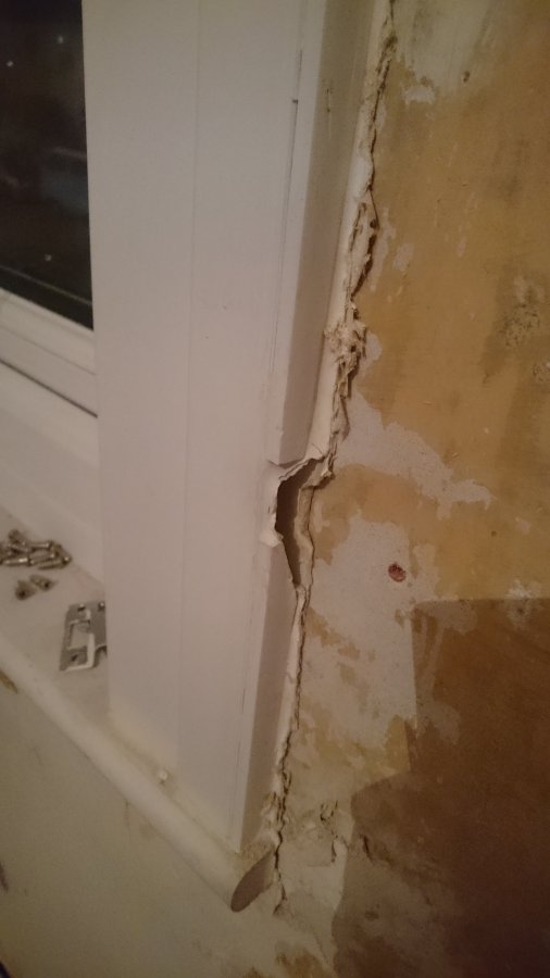 Getting the wallpaper off around the windows has been fiddly and as you can see some still remains. Whilst removing this it got me thinking about the window trim and the sealant that has been used when installing the windows.