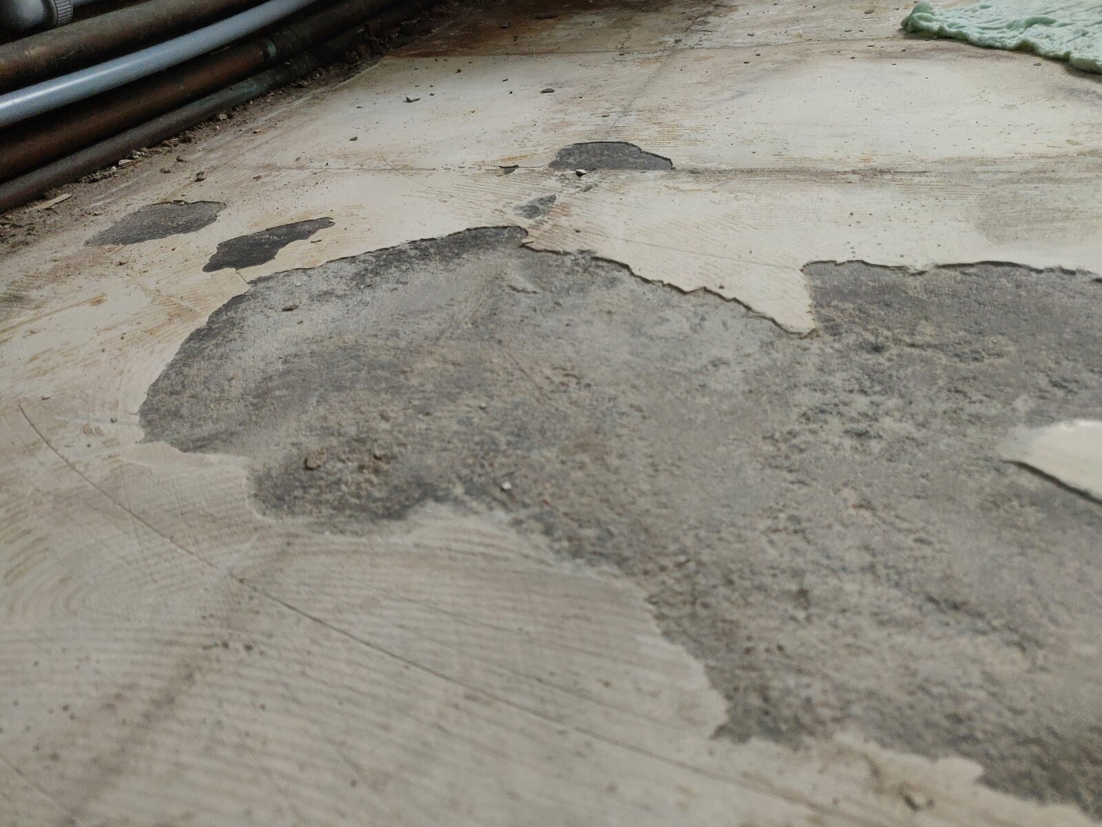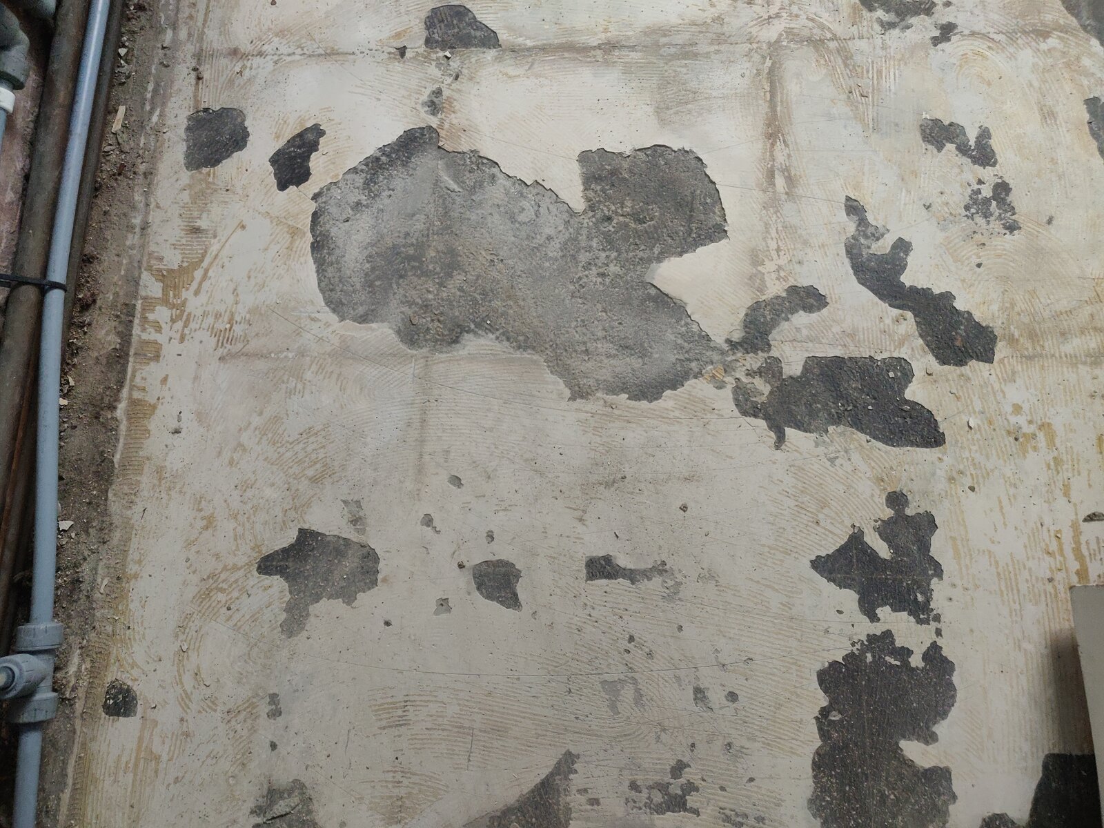 We removed old vinyl tiles from our bathroom floor and scraped it as much as we could. It's still left the old adhesive in some patches. It's quite thin though. Is it ok to tile over using porcelain tiles or do we need to prep it further?