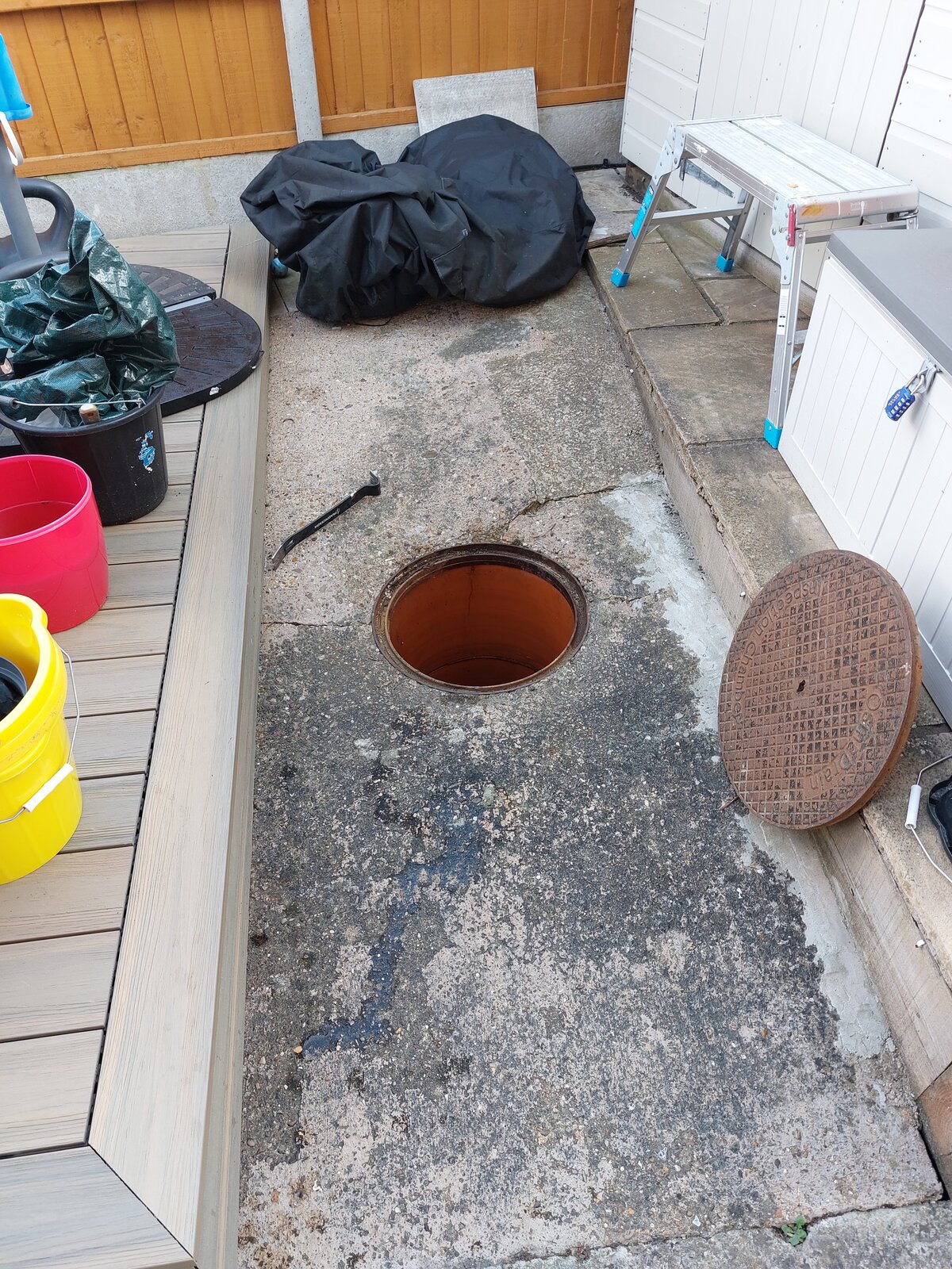 2. There is currently manhole cover and I would like to replace it with something like this https://skyplastics.co.uk/460mm-rou...6q7OHZQWLVOfTNIj-ykiB99df-VF-LnRoCbLsQAvD_BwE so it can be invisible. Although the surface around is in the slope, so it might get difficult? I can't find anything suitable that is round.