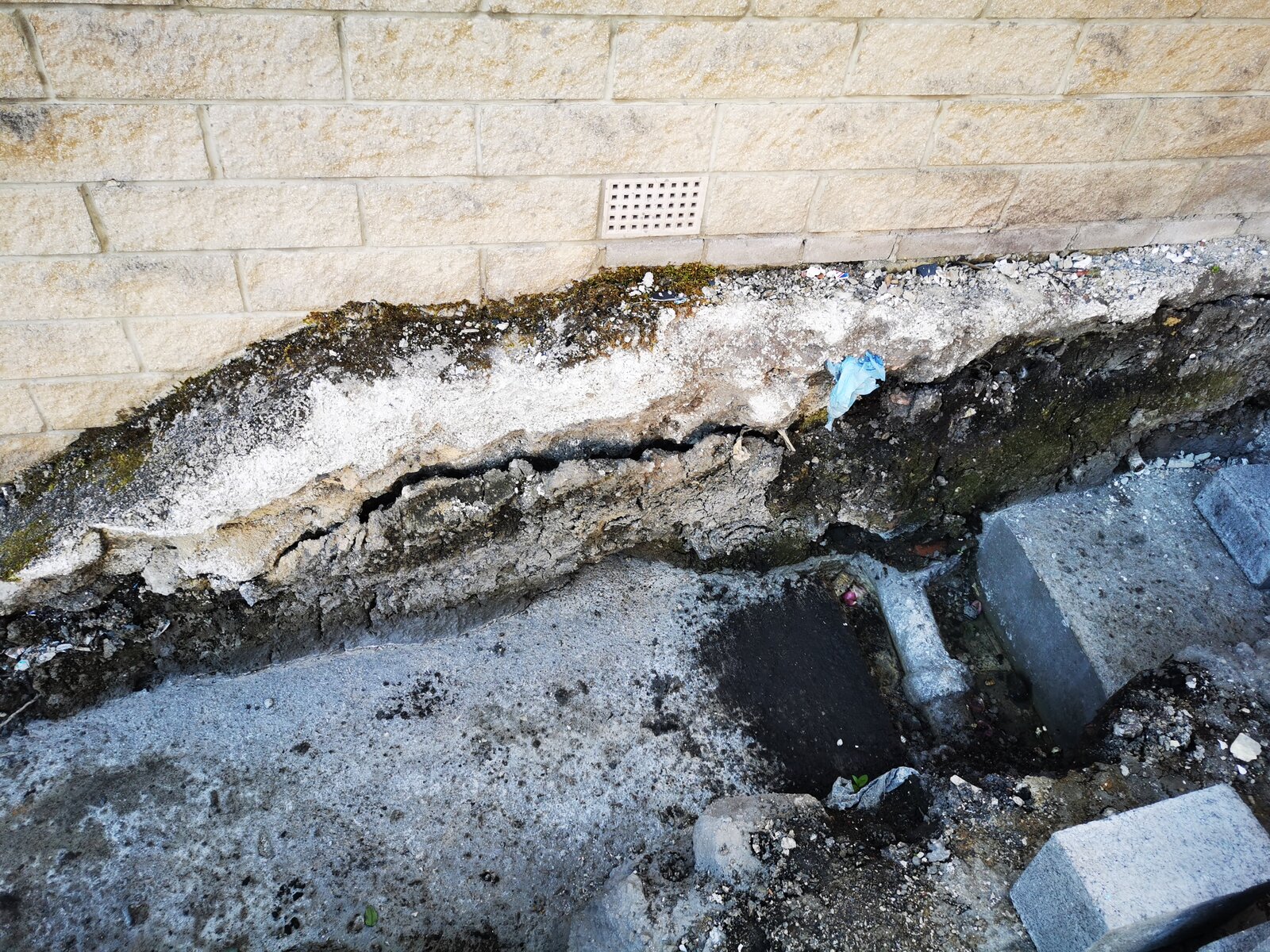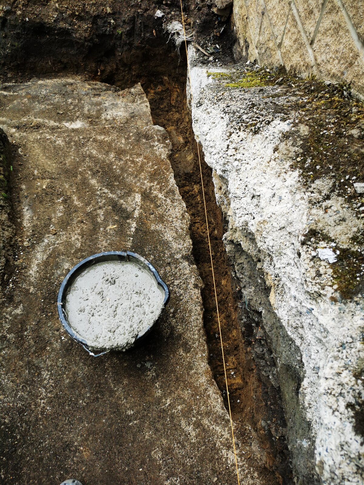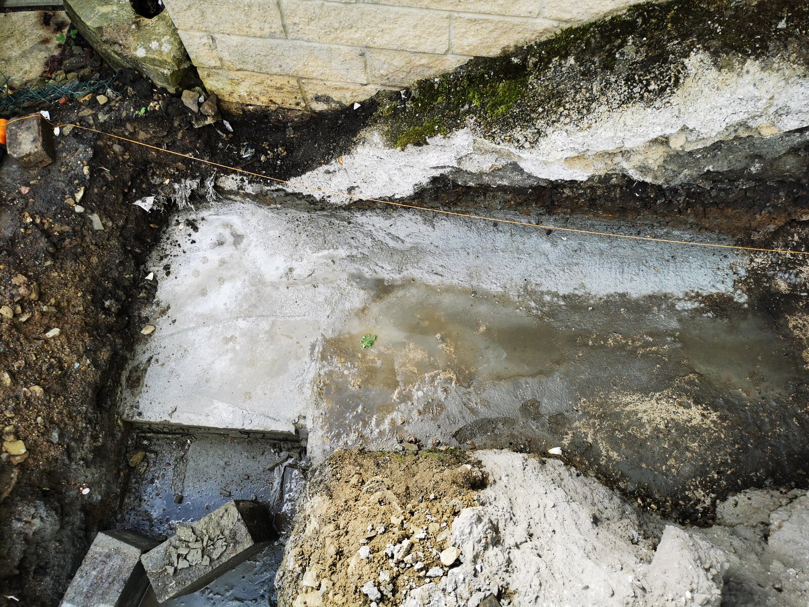 It's needs to go 35cm to the right (blue arrow). The block is right on edge of footings.