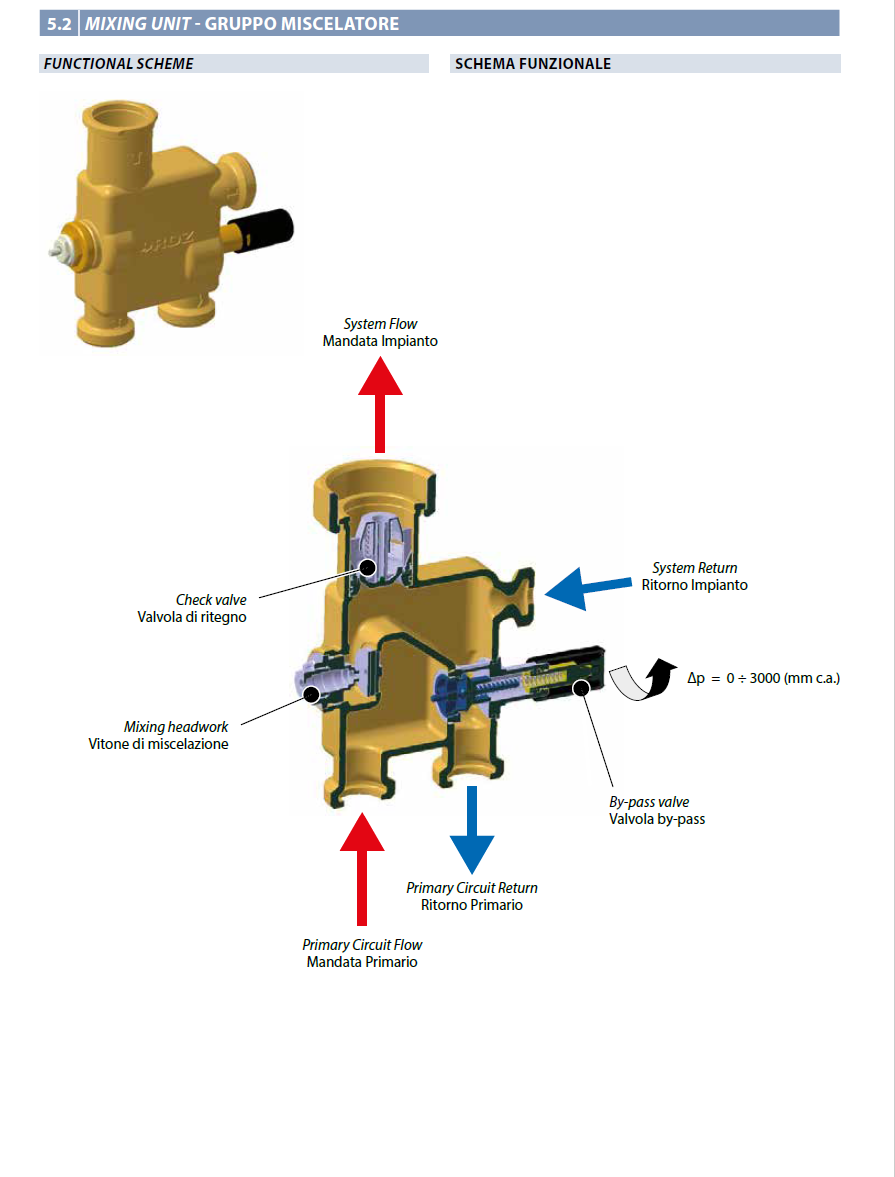 In the panel with the pipework the large pipe which goes into the mixing valve is hot. Mixing valve around that pipe is also hot, rest of mixing valve is just warm to the touch. The pump and whatever pipe that comes after the pump is lukewarm. Seems like the heat stops in the mixing valve.