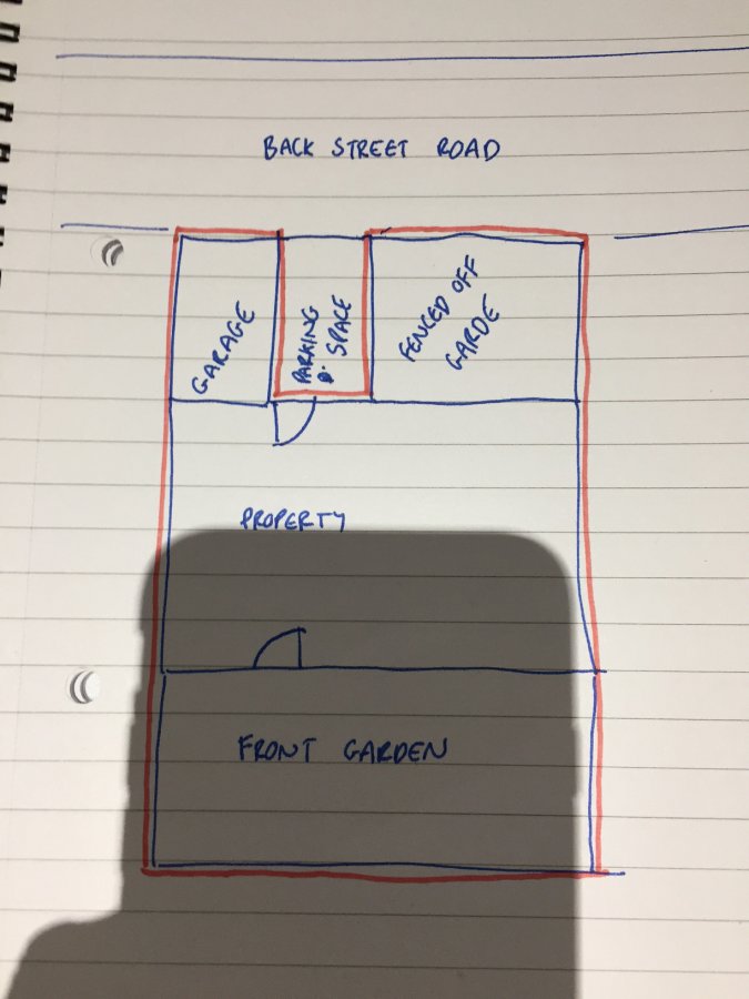 I've attached a crude drawing of what the property layout would have originally been like, with the red line outlining the boundry according to the land registry.