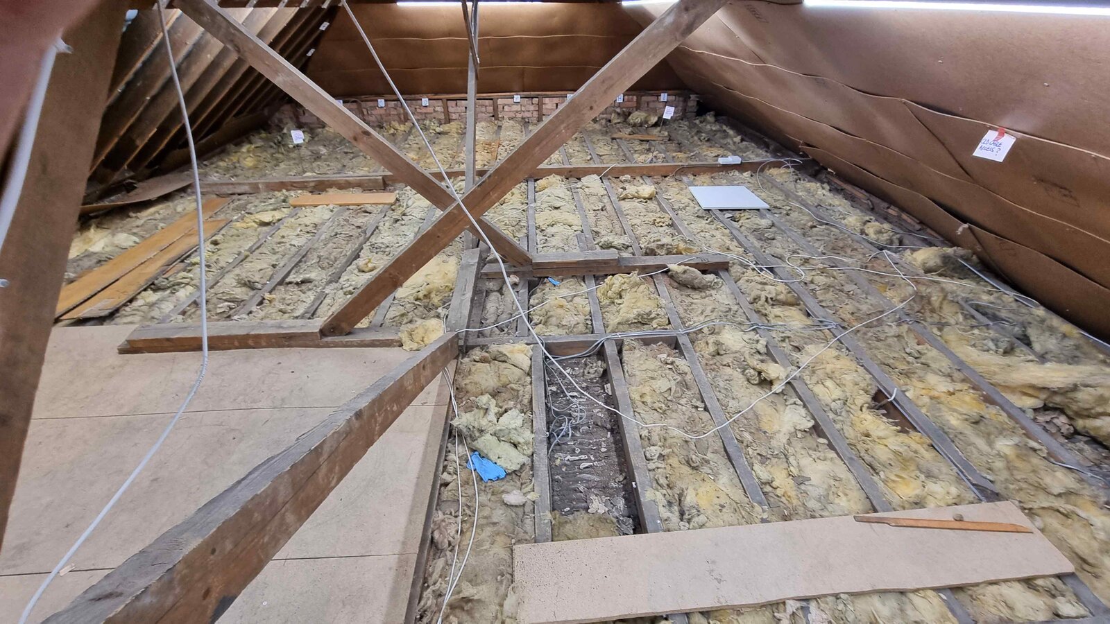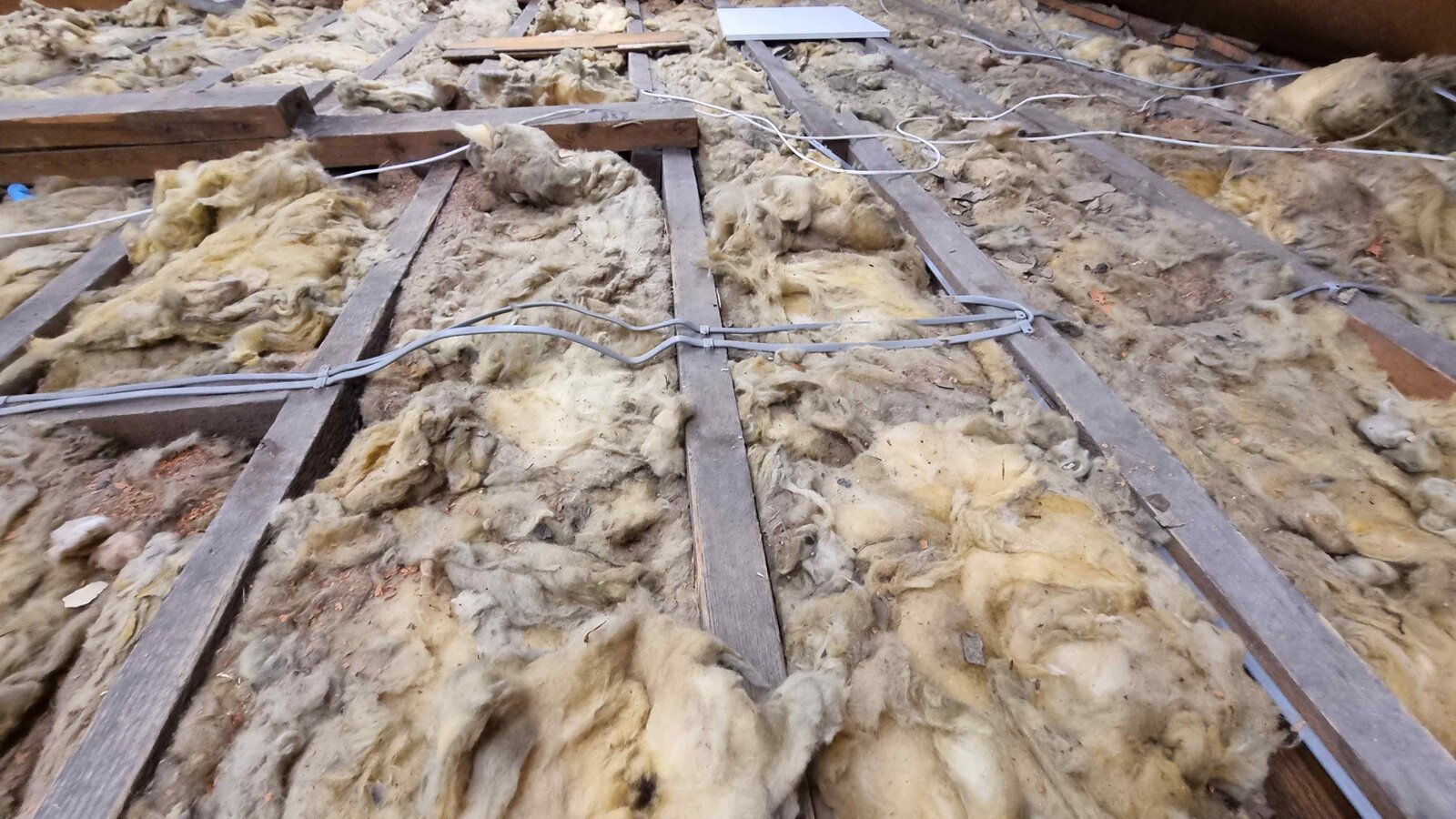 My goal is to board the loft to use for light storage, so it would be good to have a reasonably level base to start with. I don’t really have to screw 2 x 1 (or thinner) sawn timber to the tops of all the joists leaving gaps for the cables do I?