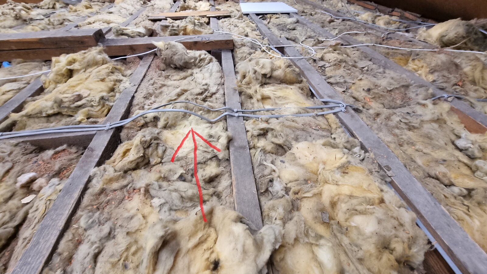 The attached picture (with red arrow) is the worst case of cables being vulnerable (bridging multiple joists so susceptible to being trod on) and I was wondering how this should be dealt with.