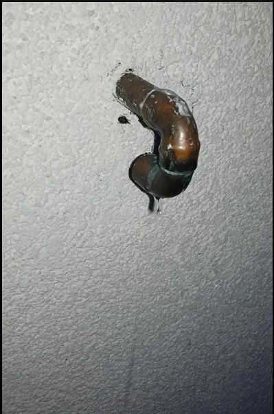 When I went to the back of the building I see the bent pipe outside is leaking continuously everyday, I attached some images, if someone can please give me a clue what the problem is