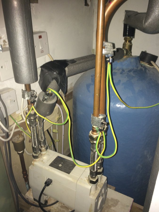 It is a pumped system. Pump is in the airing cupboard (see pic) with feeds to the shower going into the loft and dropping down into the bathroom. There are bottle vents at the top of the shower feeds.