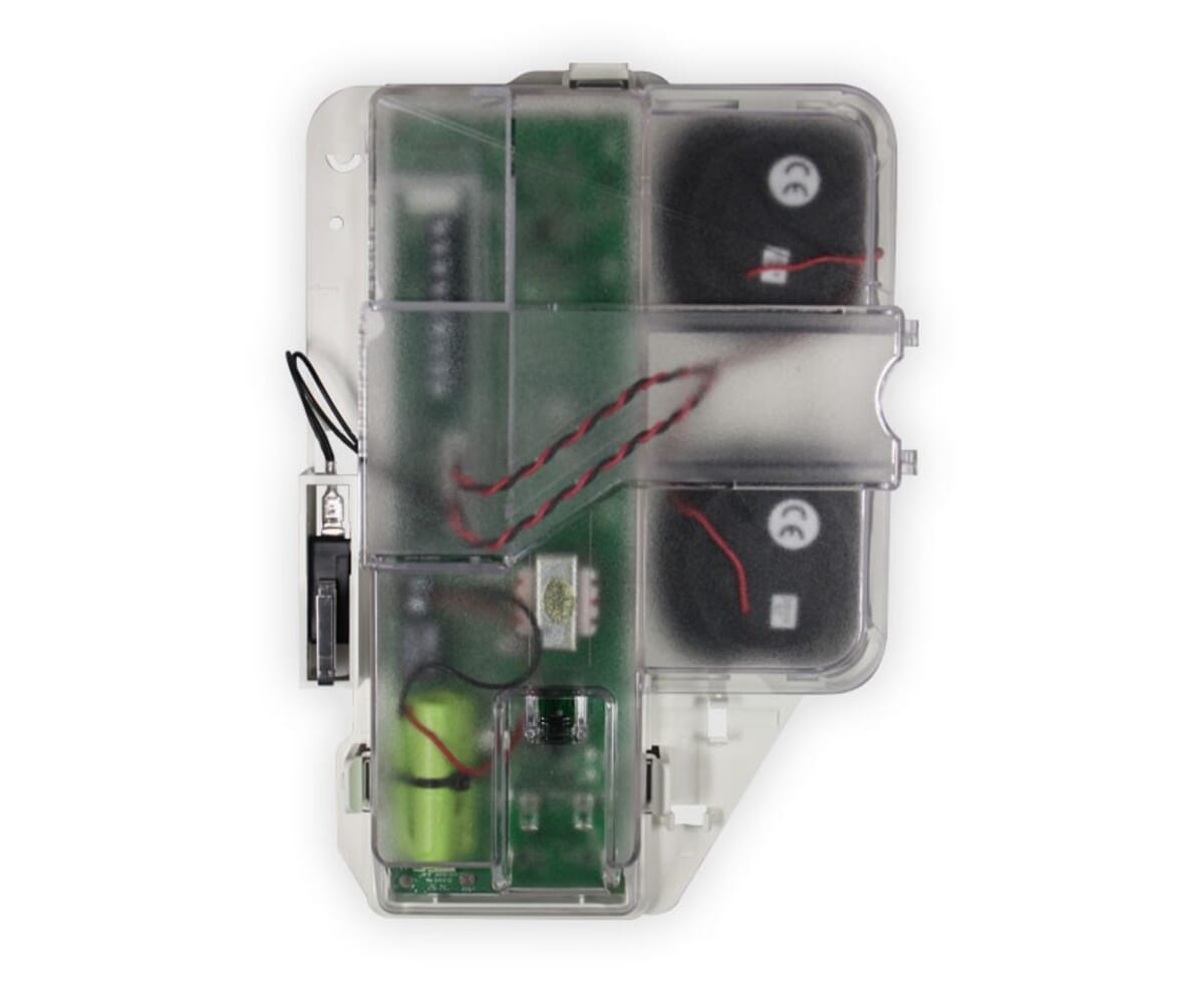 Full removal of the inner clear cover requires removal of the white support secured by one screw, then the white part slides up then aut (forward). Obviously the connections should be photographed first. Alternatively just attach battery to the said external terminals; and move the jumper to select EXT.