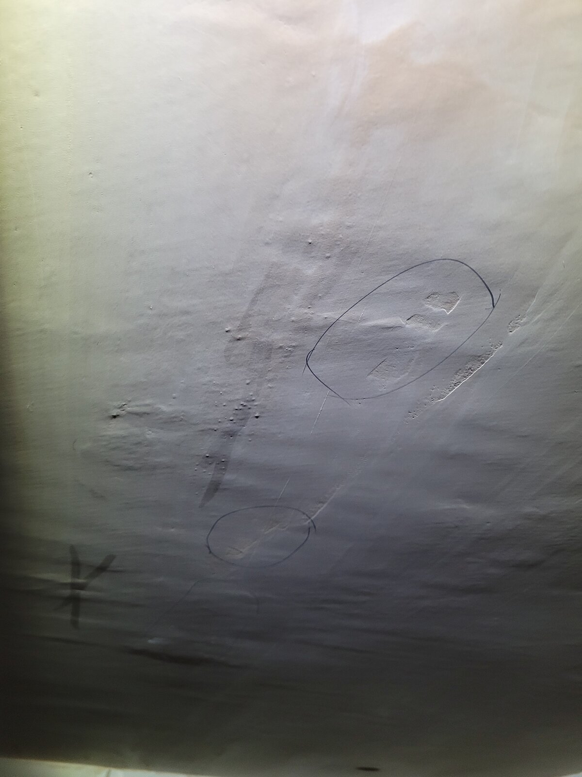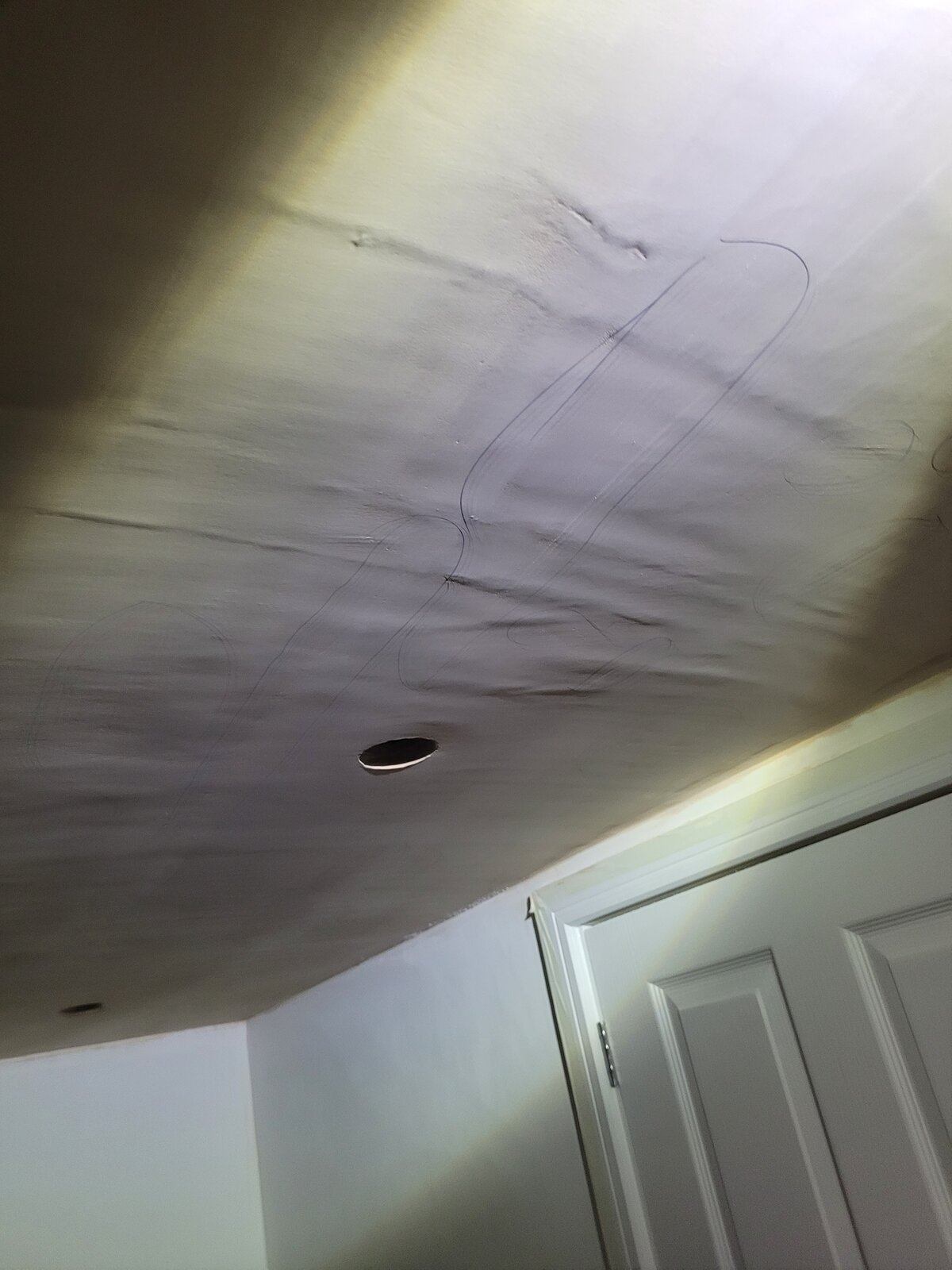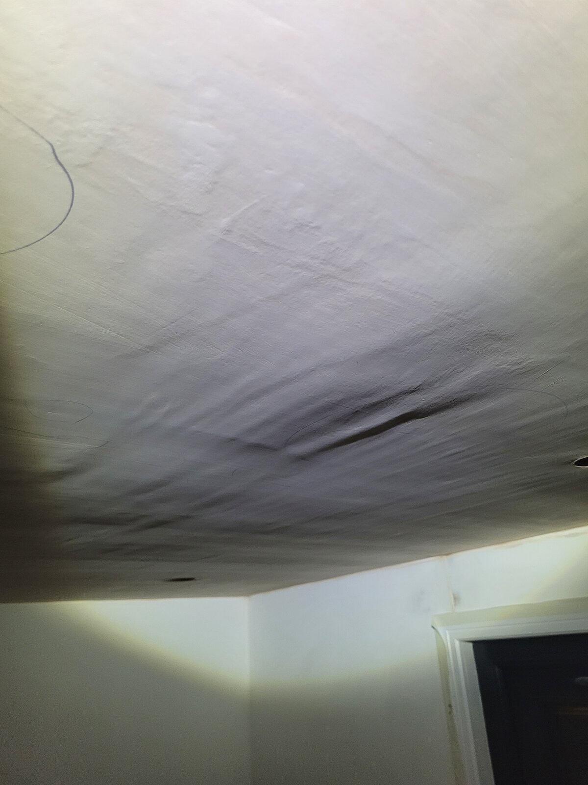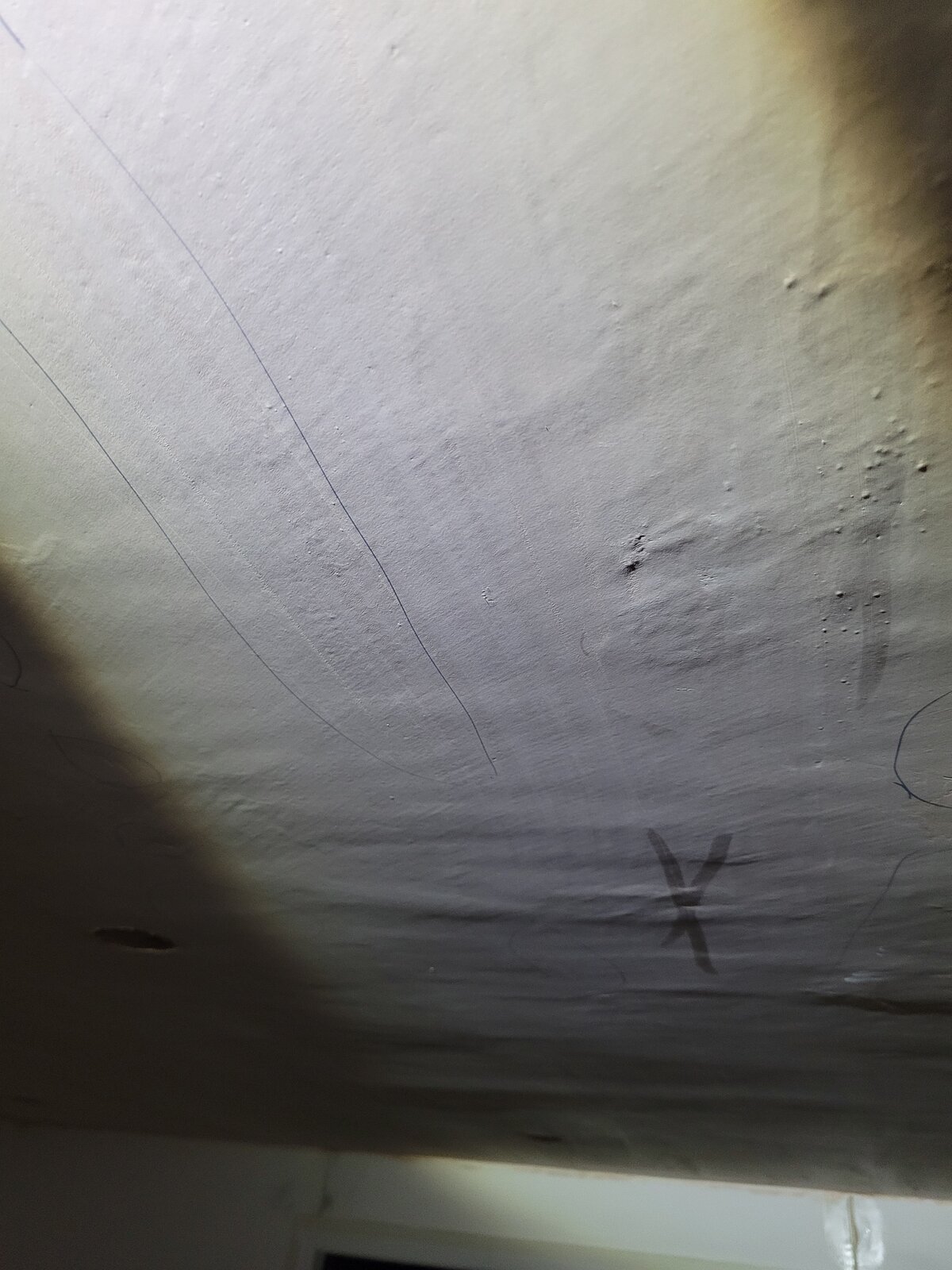 Later that evening I thought I would have a propper good look at the ceiling and I now think it looks really crap. I have circled near enough 100 imperfections and today after it has dried out a bit, I noticed the whole ceiling is really bumpy.