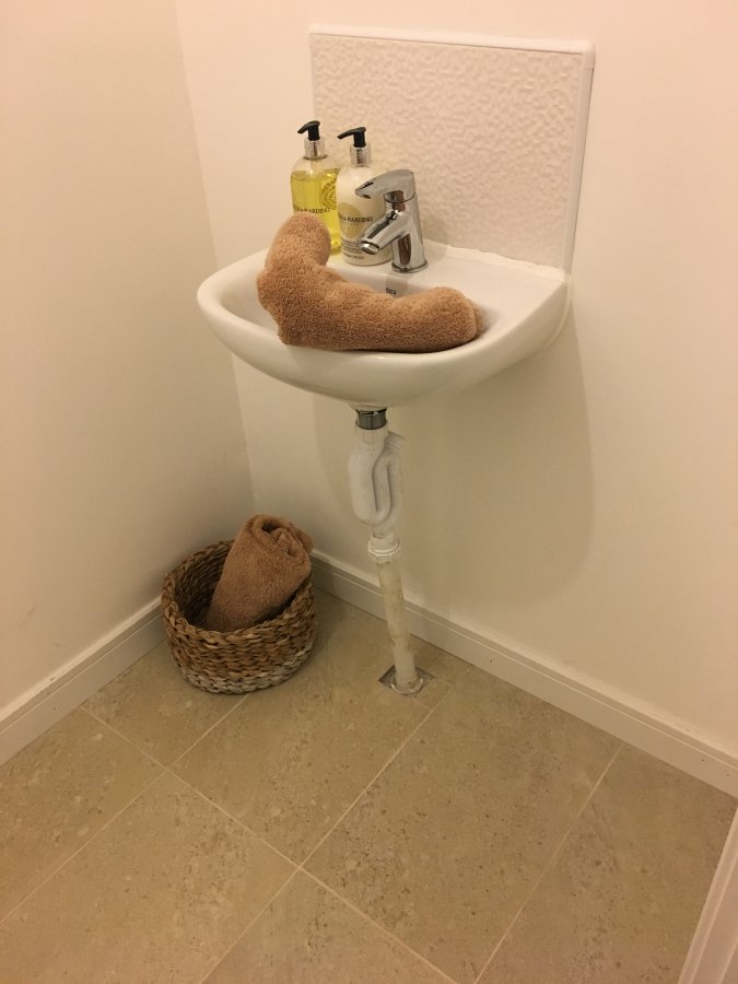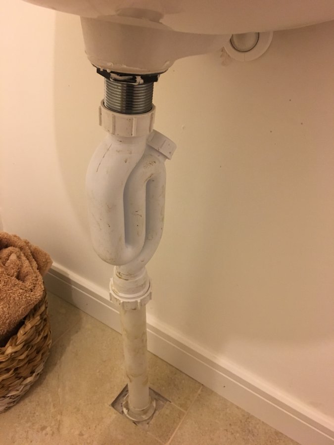 Hi Guys,I've recently moved in to a new build and had to get a tiler in, which meant I had to remove the pedestal from the sink downstairs, from my untrained eye the plumbing looks really bad, we ideally wanted to put in a countertop sink with a floating shelf, after removing the pedestal we noticed the pipe goes down from the sink straight in to the floor.