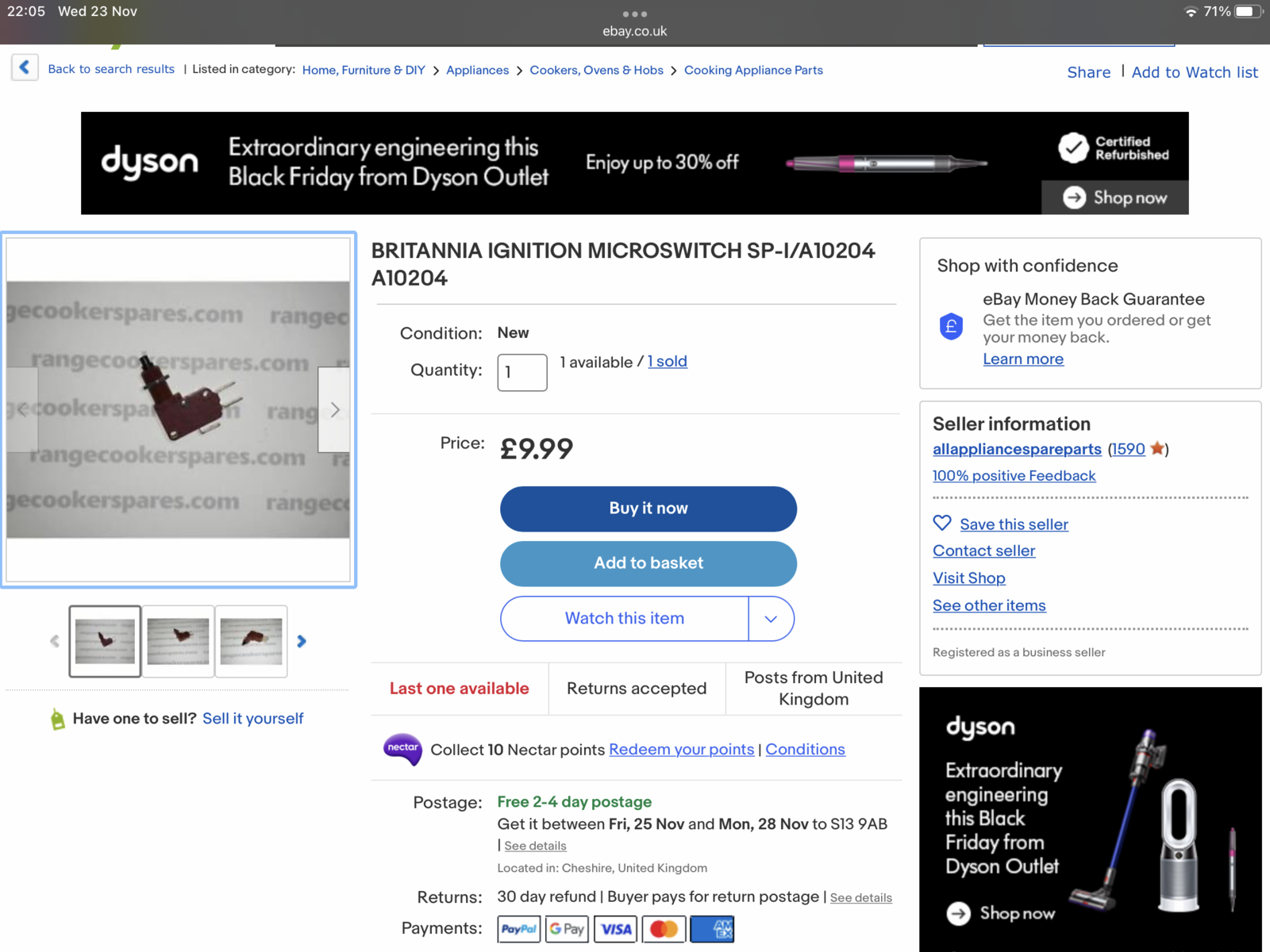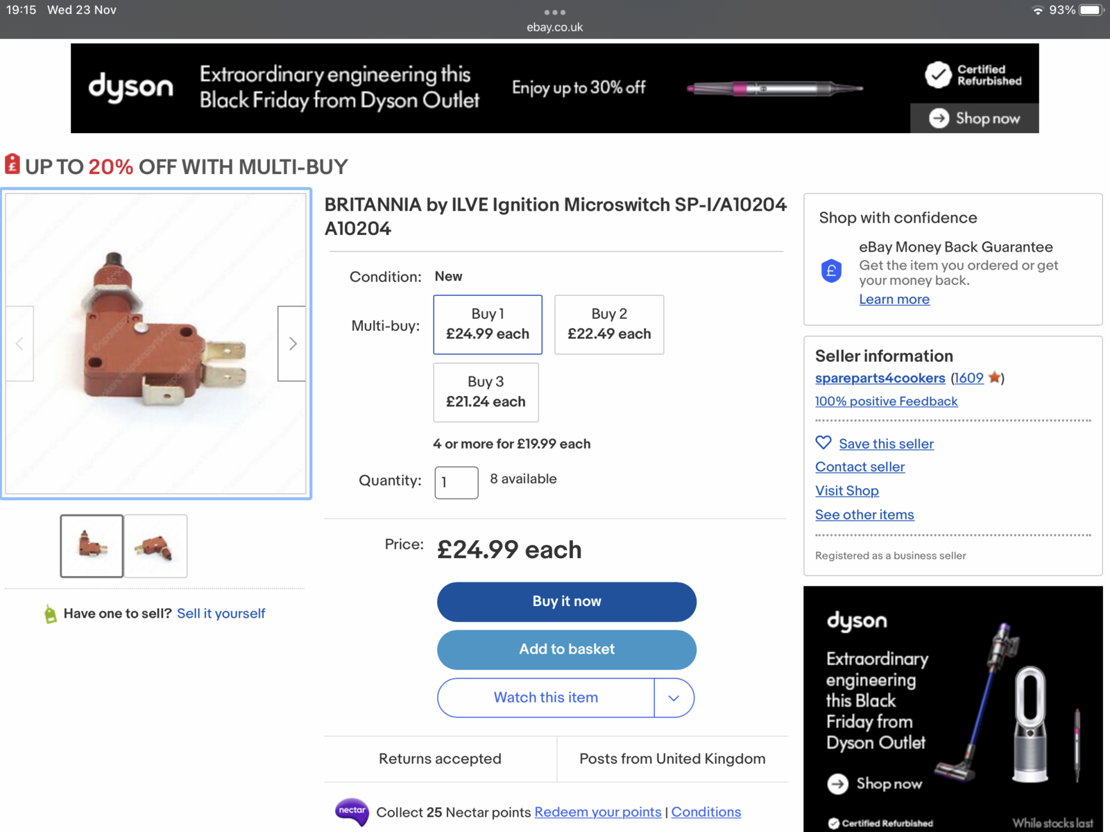 My 20+ year old Britannia cooker needs a new ignition button and as none of the suppliers who claim to have them on the Internet respond, I thought I'd try and source one myself.