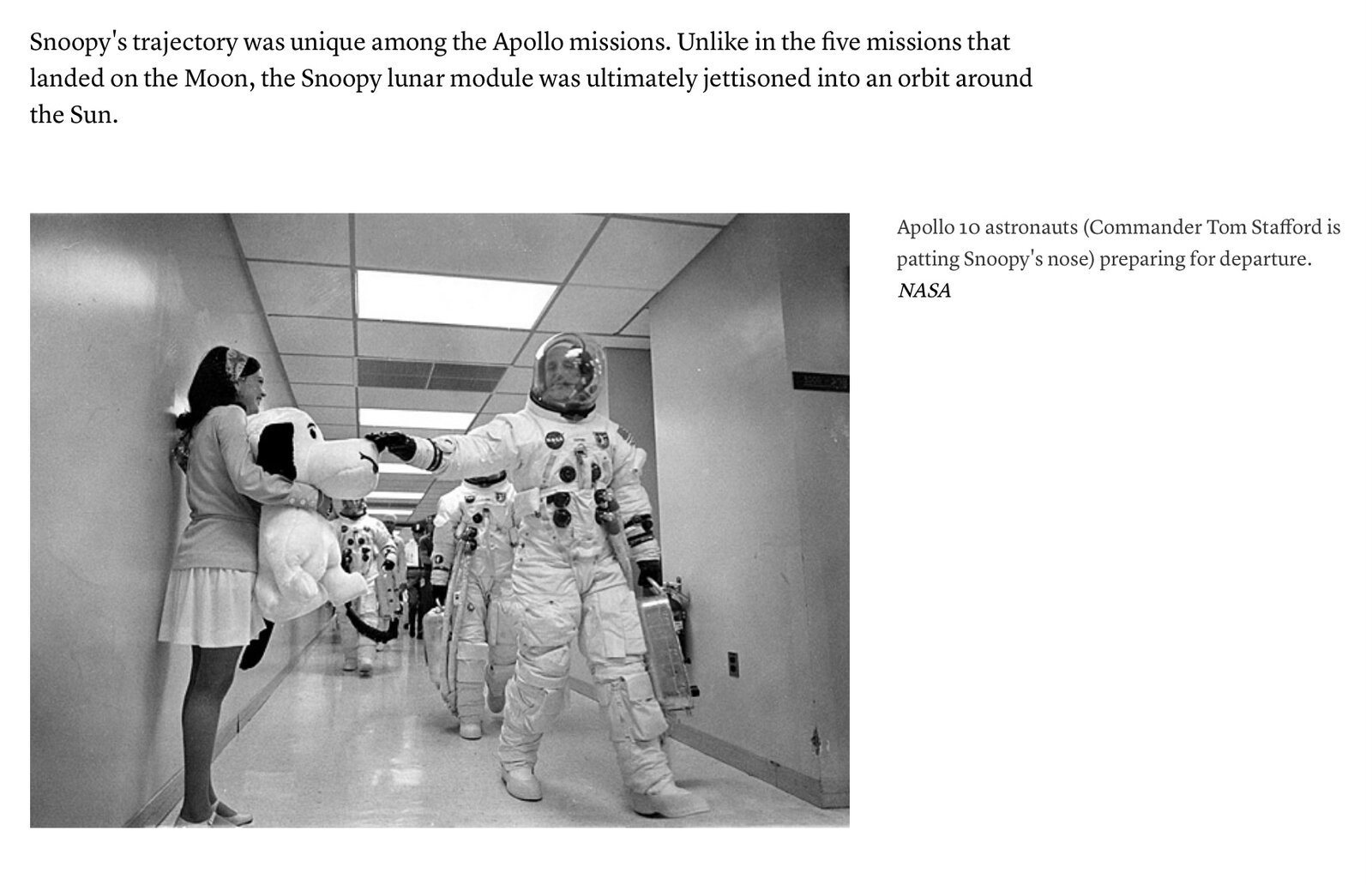 The Apollo 10 lunar module was 'Snoopy'. It's job was to snoop out potential landing sites for Apollo 11.