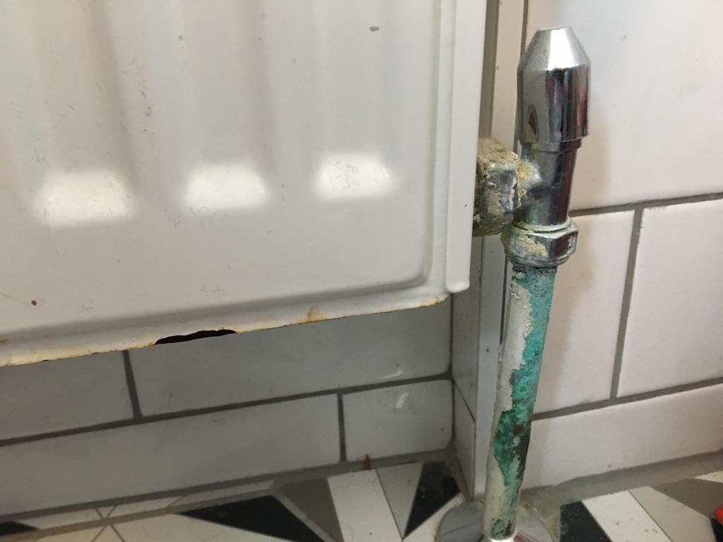 1. Most likely leaking from the (large) union nut which connects the radiator tail to the valve outlet.