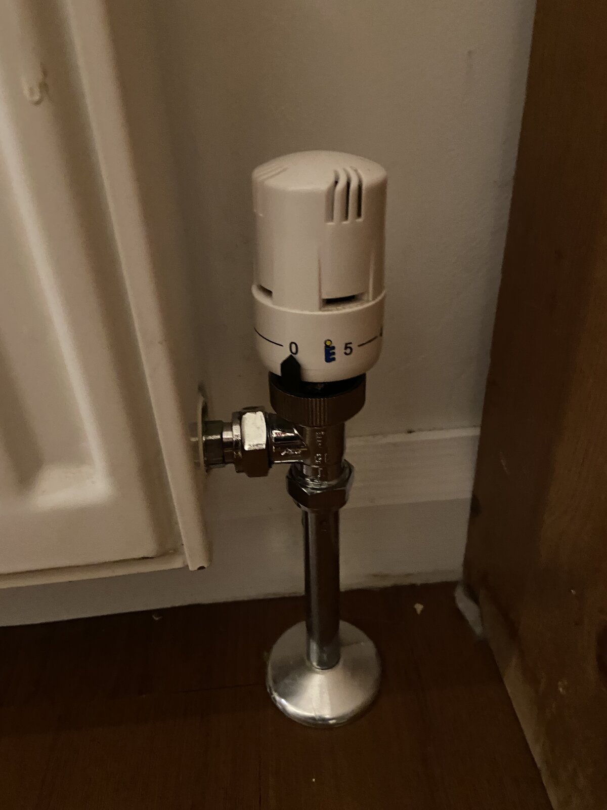 I’m guessing when we had it installed the plumber put the valves on the radiator to measure and gave no tolerance to get them off and just applied valves directly to the upright pipes and tightened them up.