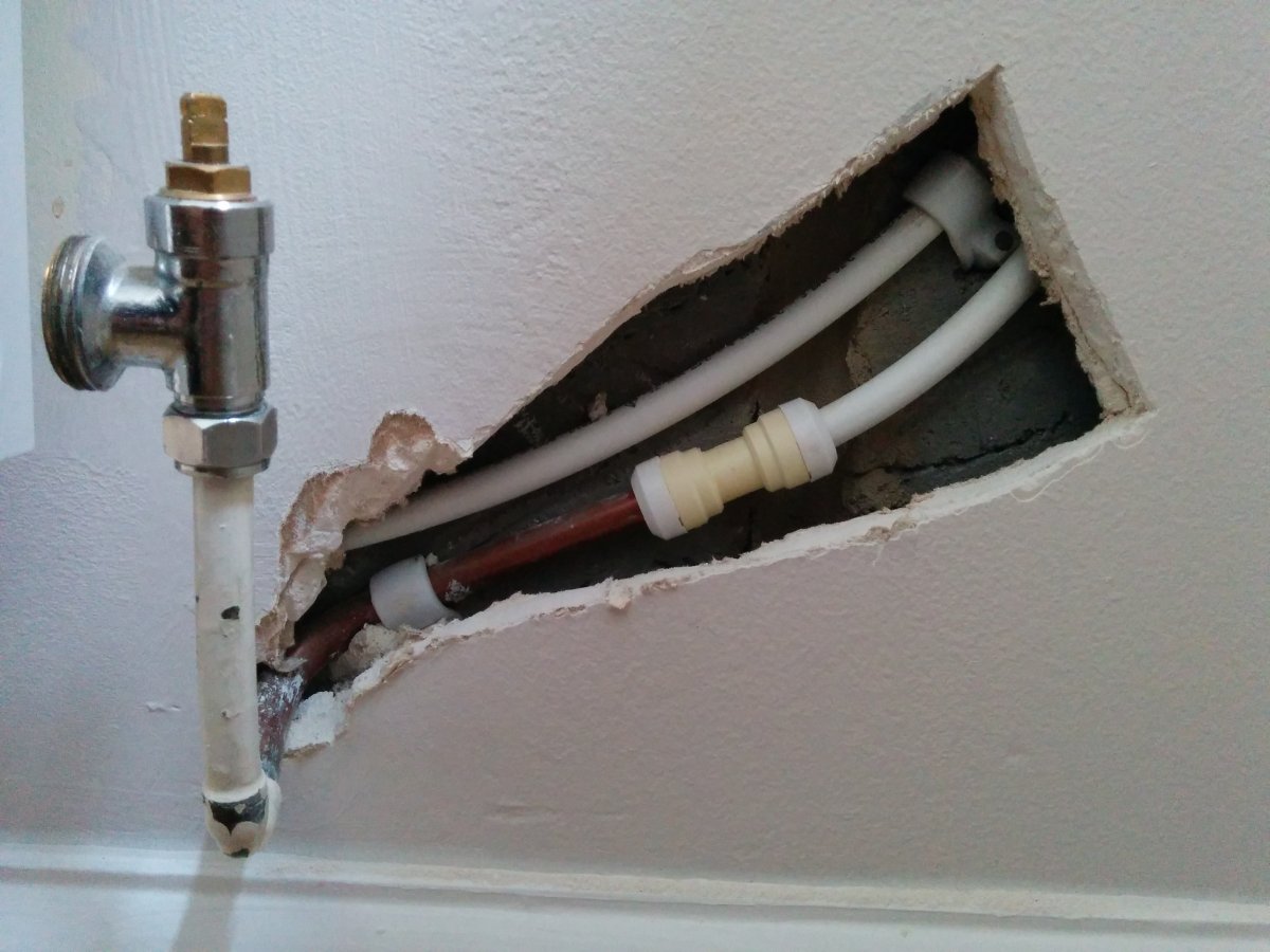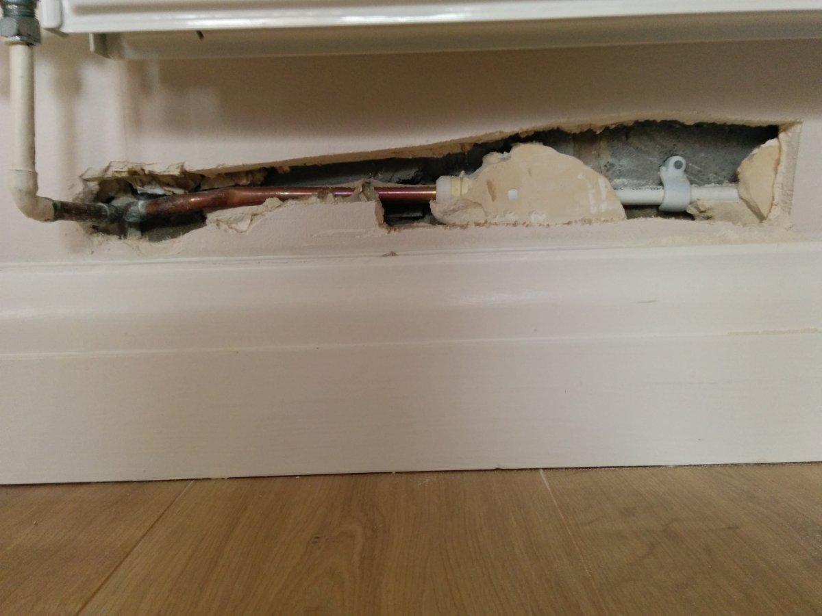 Unsure how to approach this, I decided to cut out a section of plasterboard to see exactly what I was dealing with (see pictures). I have a handful of these to do, so I figured if I make a mess on one, at least I know where I stand. A short investigation on some of the others, seems to yield the same results. Concealed pushfits a short distance from the copper, sandwiched between the plasterboard and blockwork and sometimes covered over by plasterboard adhesive (thanks for making my life easy mr house builder).