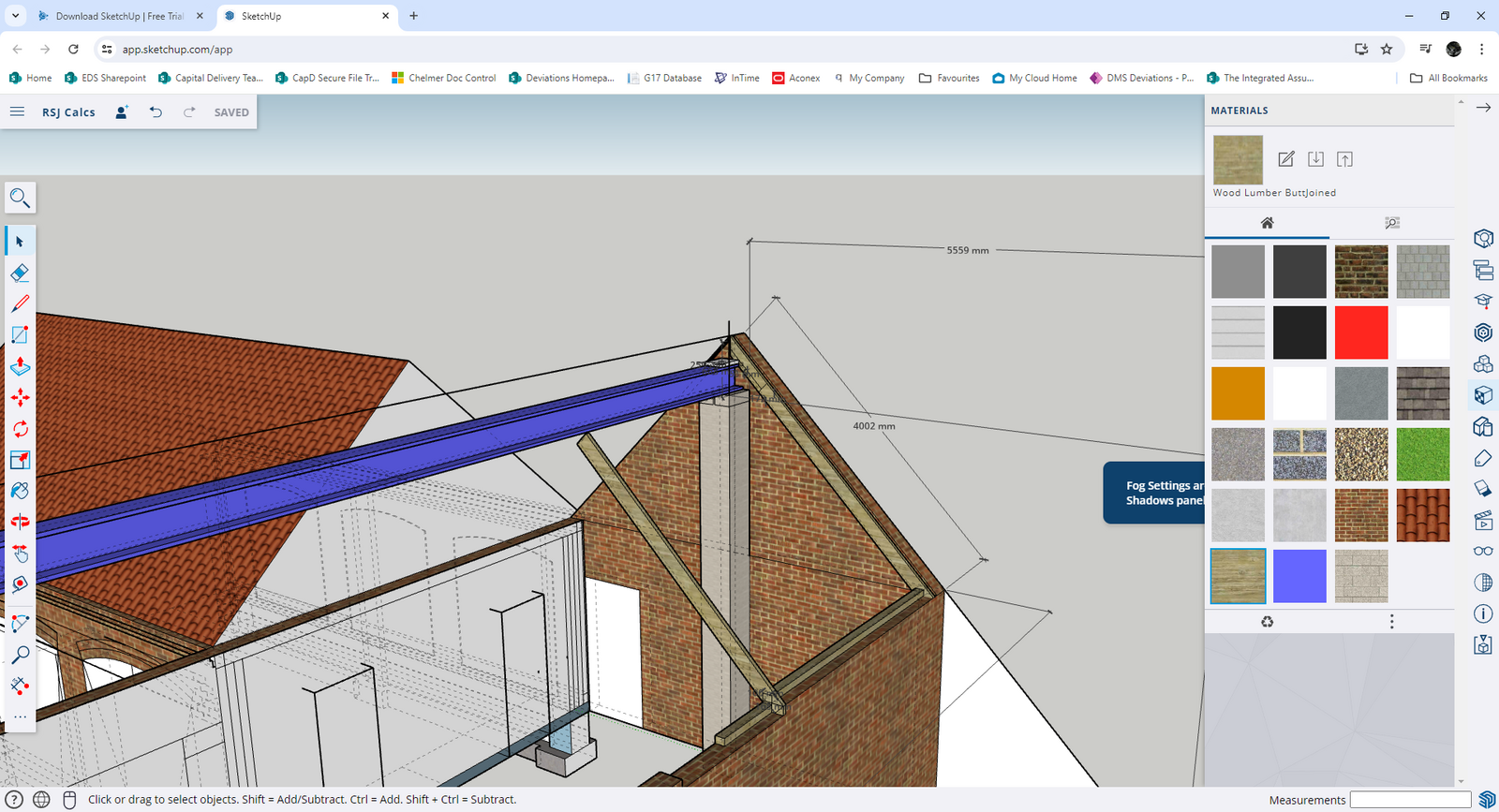 To briefly summarise, I am altering an existing outbuilding (to be used as a workshop) to have a vaulted ceiling by installing a large steel beam rested onto two piers at each end as illustrated in my sketchup model below.